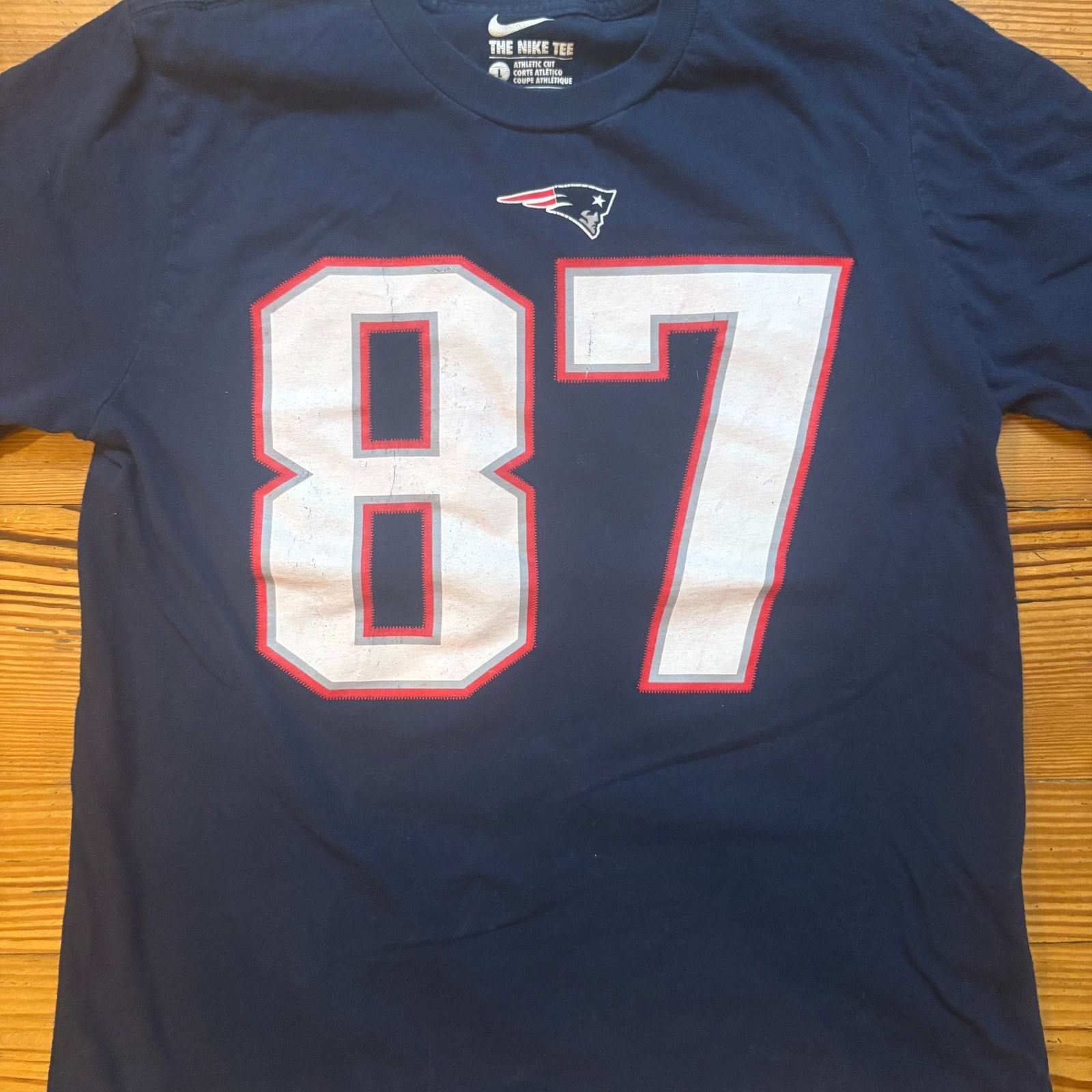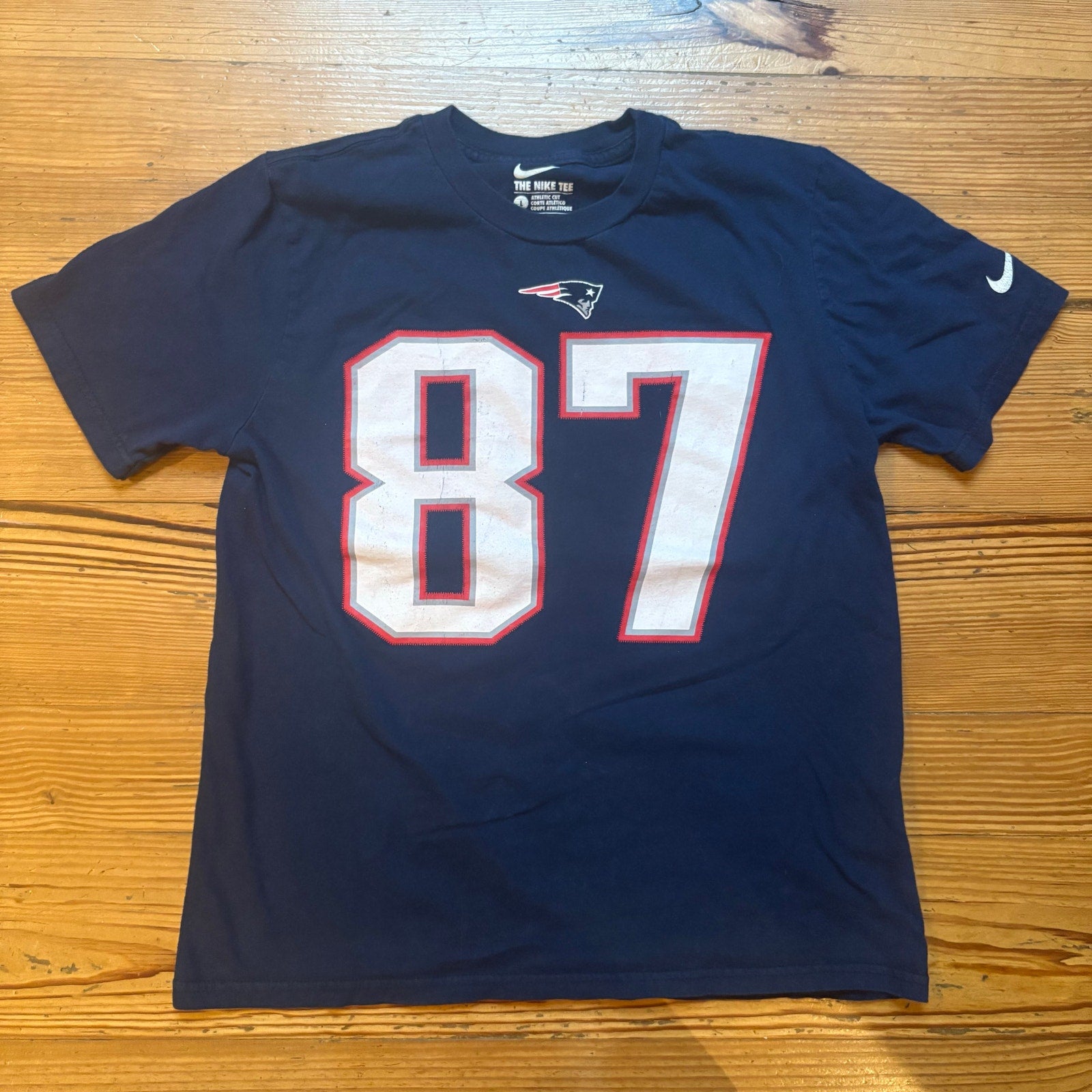 Item: Nike New England Patriot 87 Gronkowski blue short sleeve shirt, athletic cut SIZE L