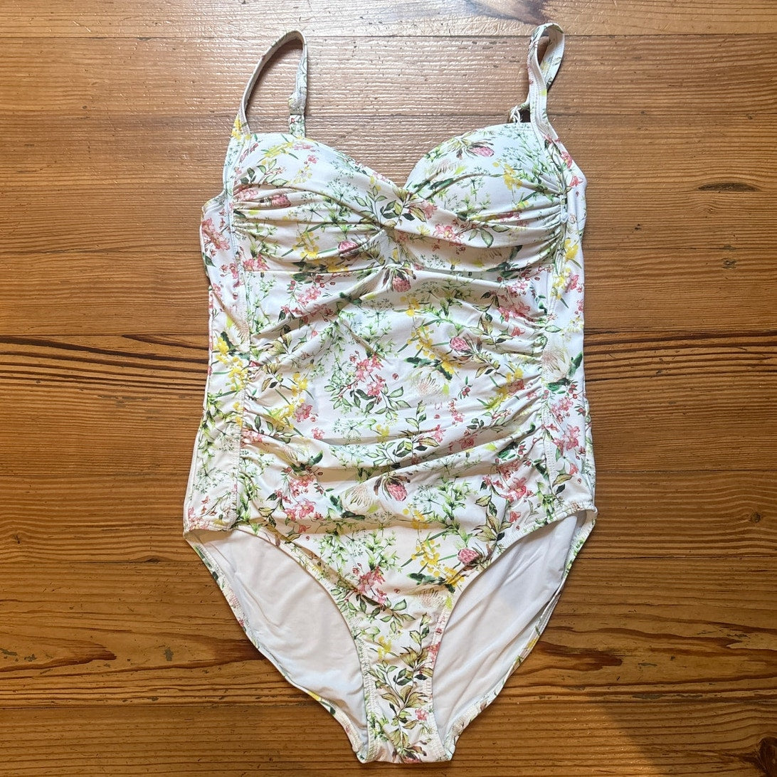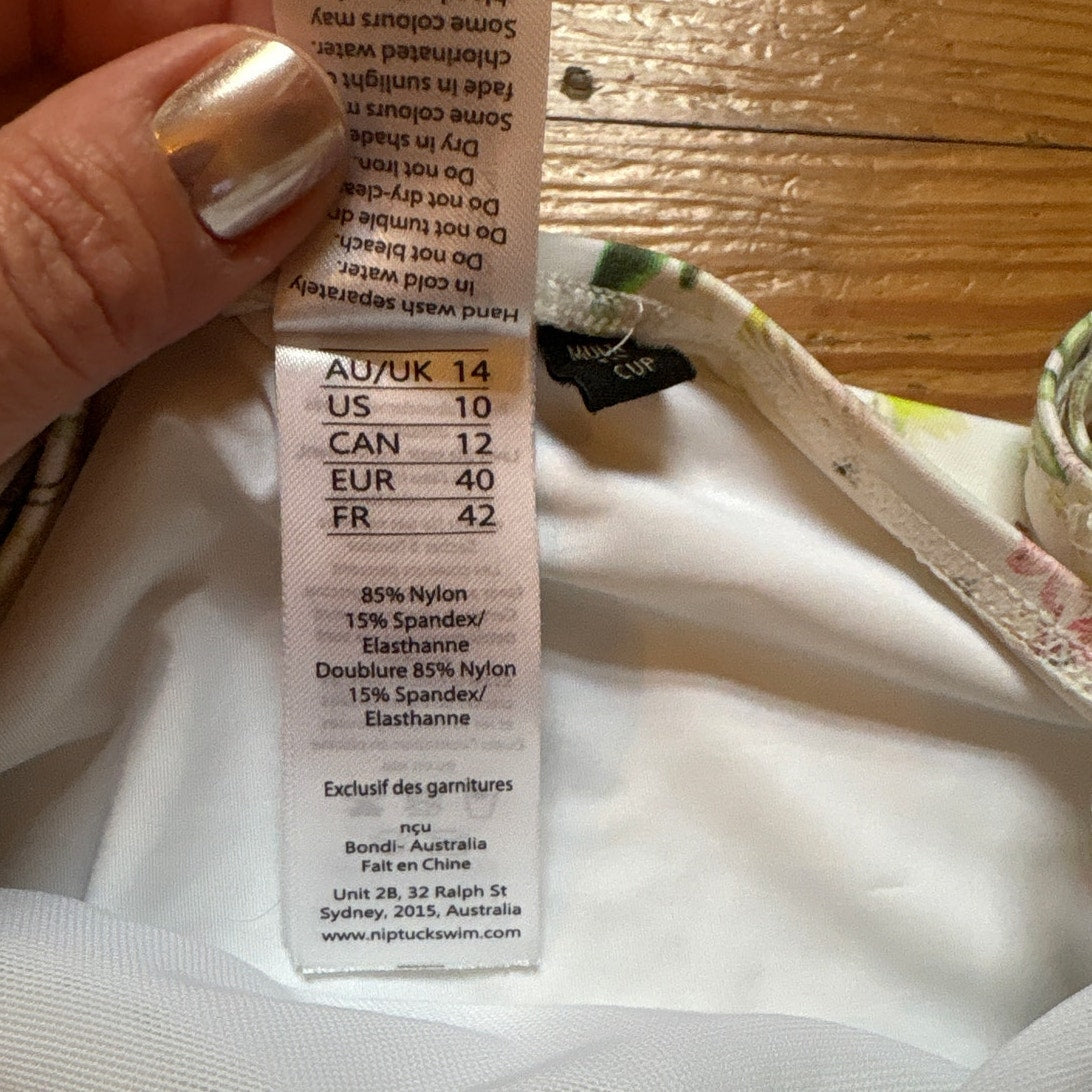 NipTuck Swim white floral bustier full coverage one piece swimsuits SIZE 10