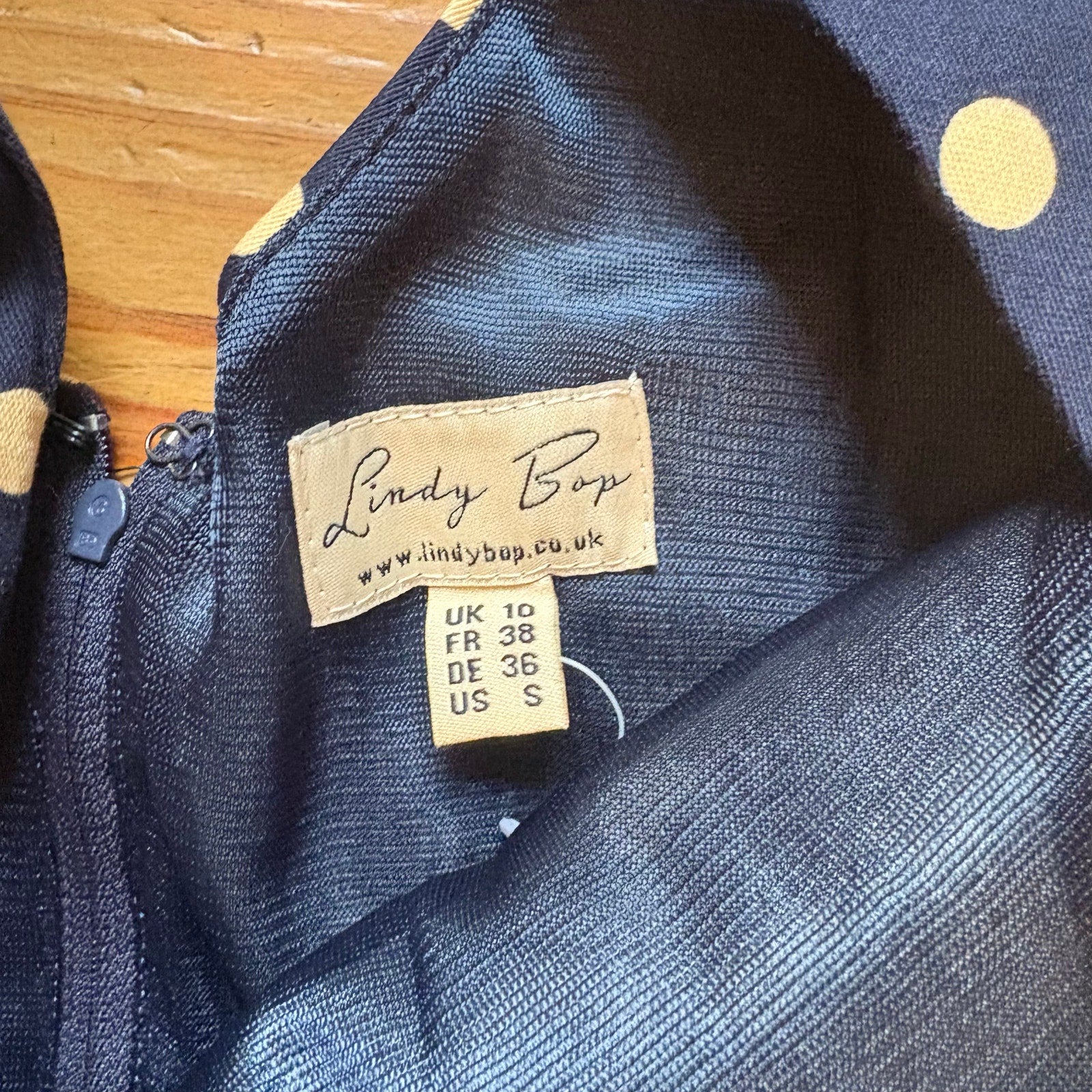 NWT Lindy Bop navy blue beige polka dot sleeveless cotton midi dress SIZE S