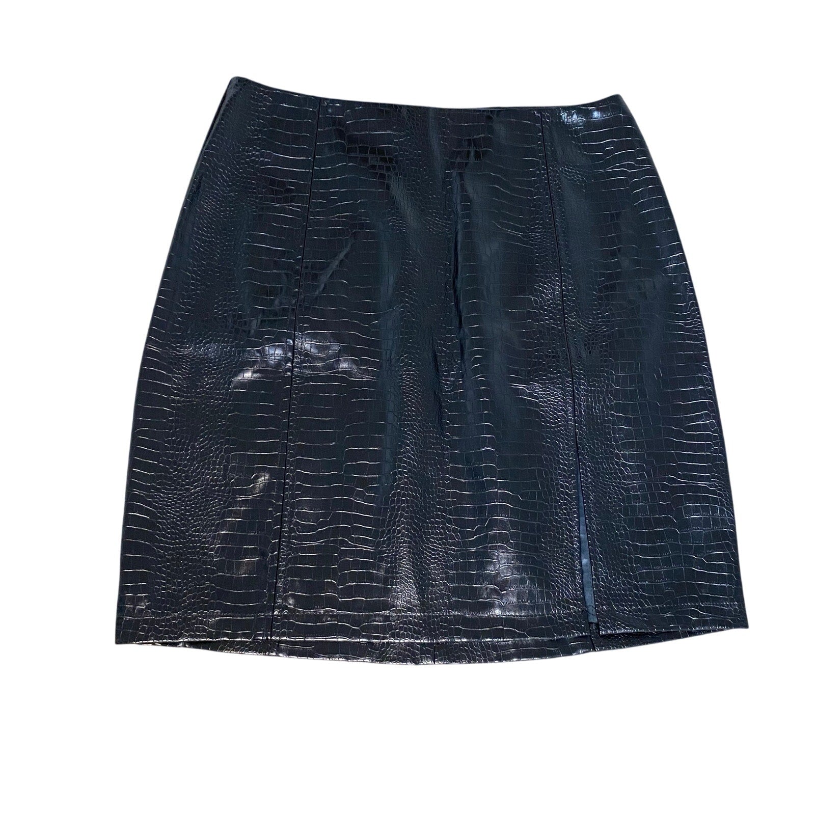 Item: NWT MANGOPOP Collection black patent leather snake skin womens mini skirt SIZE S