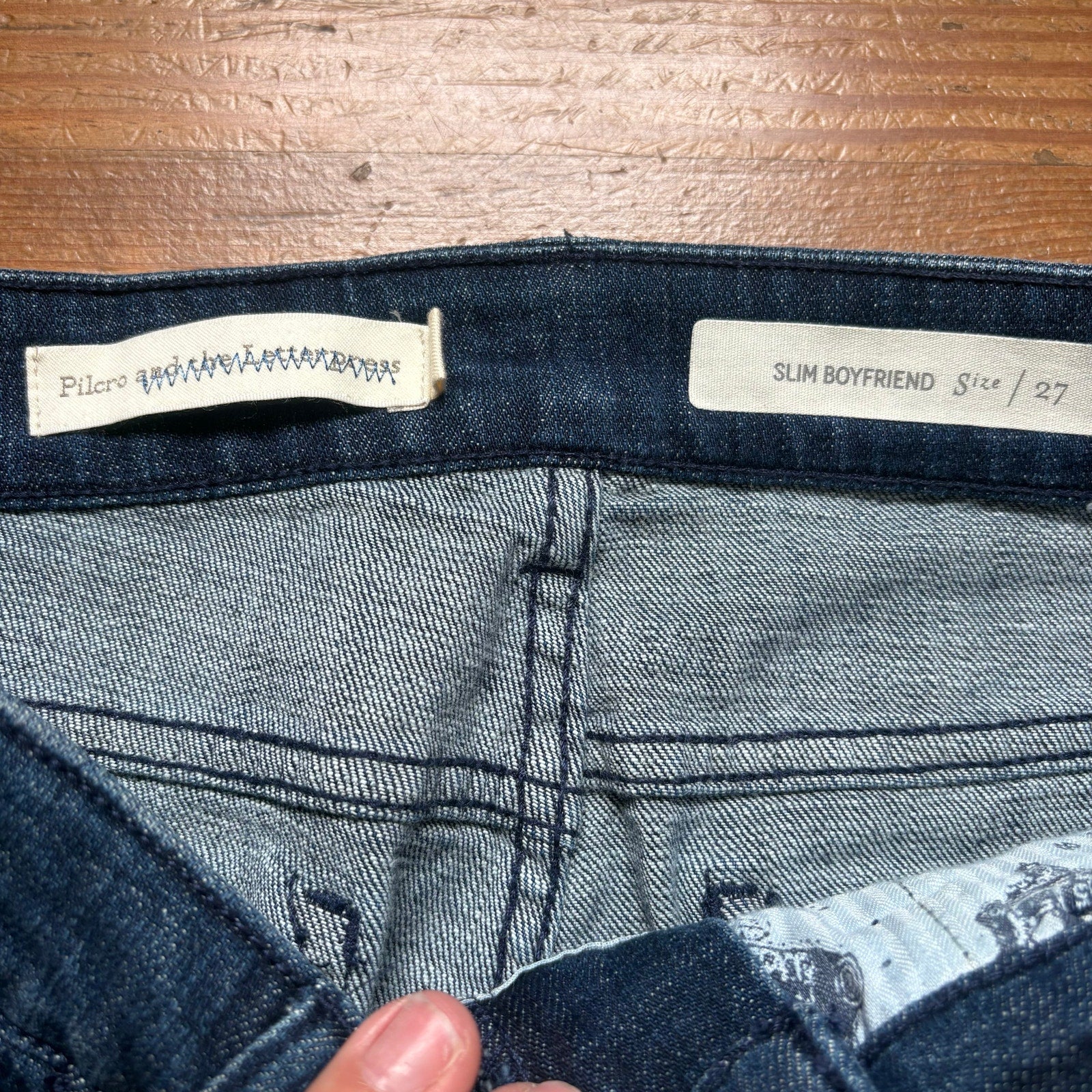 Item: NWT Pilcro Anthropologie dark wash slim boyfriend sequin floral jeans SIZE 27 cropped