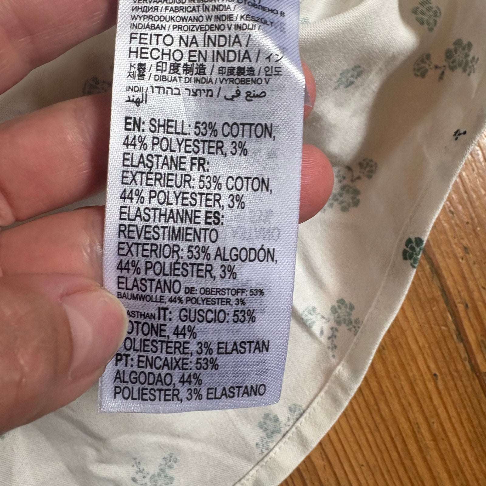 white with floral pattern, short sleeve, cotton poly blend, button up, shirt sleeve, slim fit
