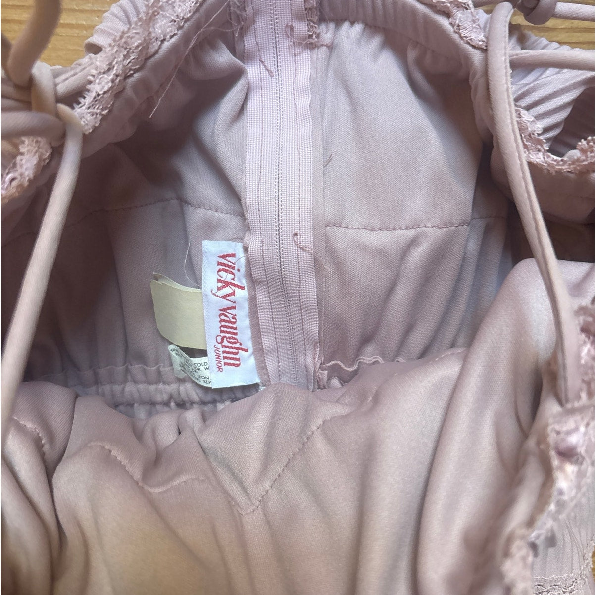 Item: NWT Vicky Vaughn vintage blush pink lace ruffle top tie strap maxi dress SIZE 7