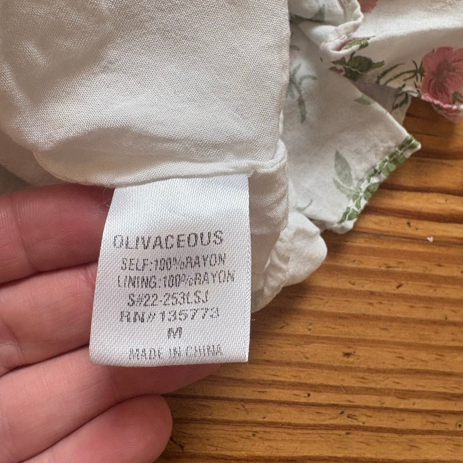 Olivaceous white pink floral ruched smocked tiered ruffle strapless top SIZE M