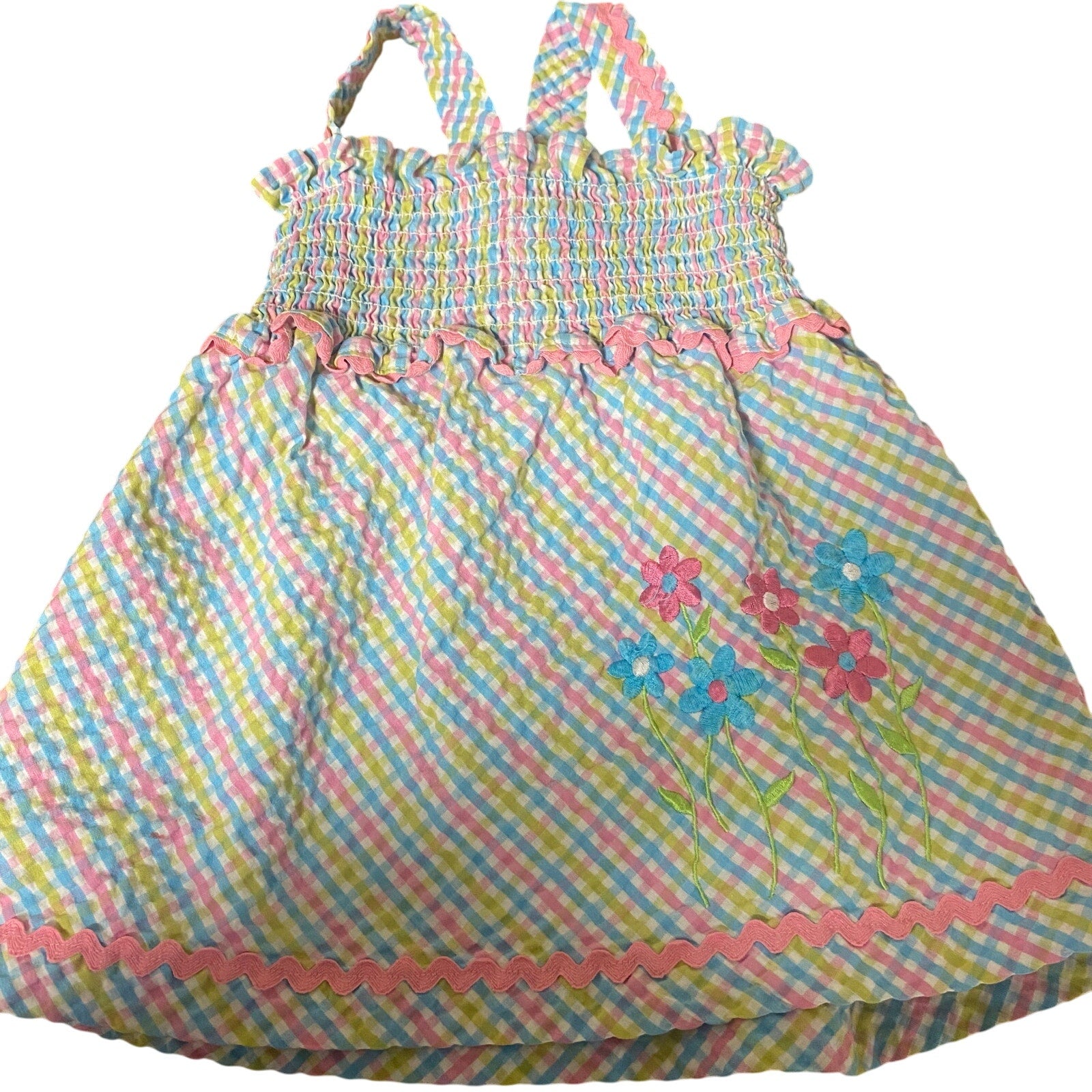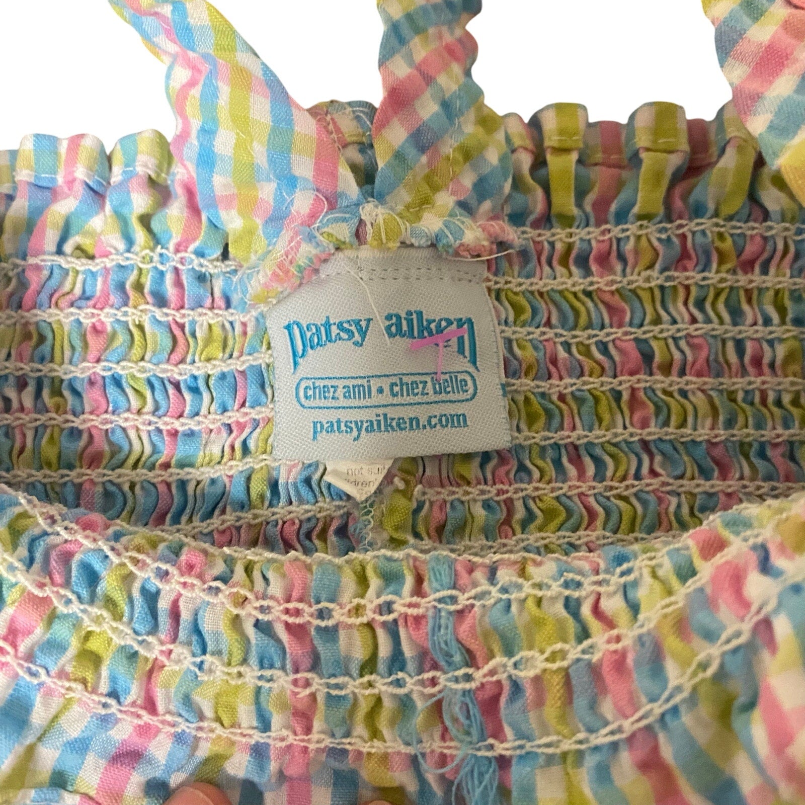 Item: Patsy Aiken pastel pink blue smocked floral embroidered tank dress SIZE 3