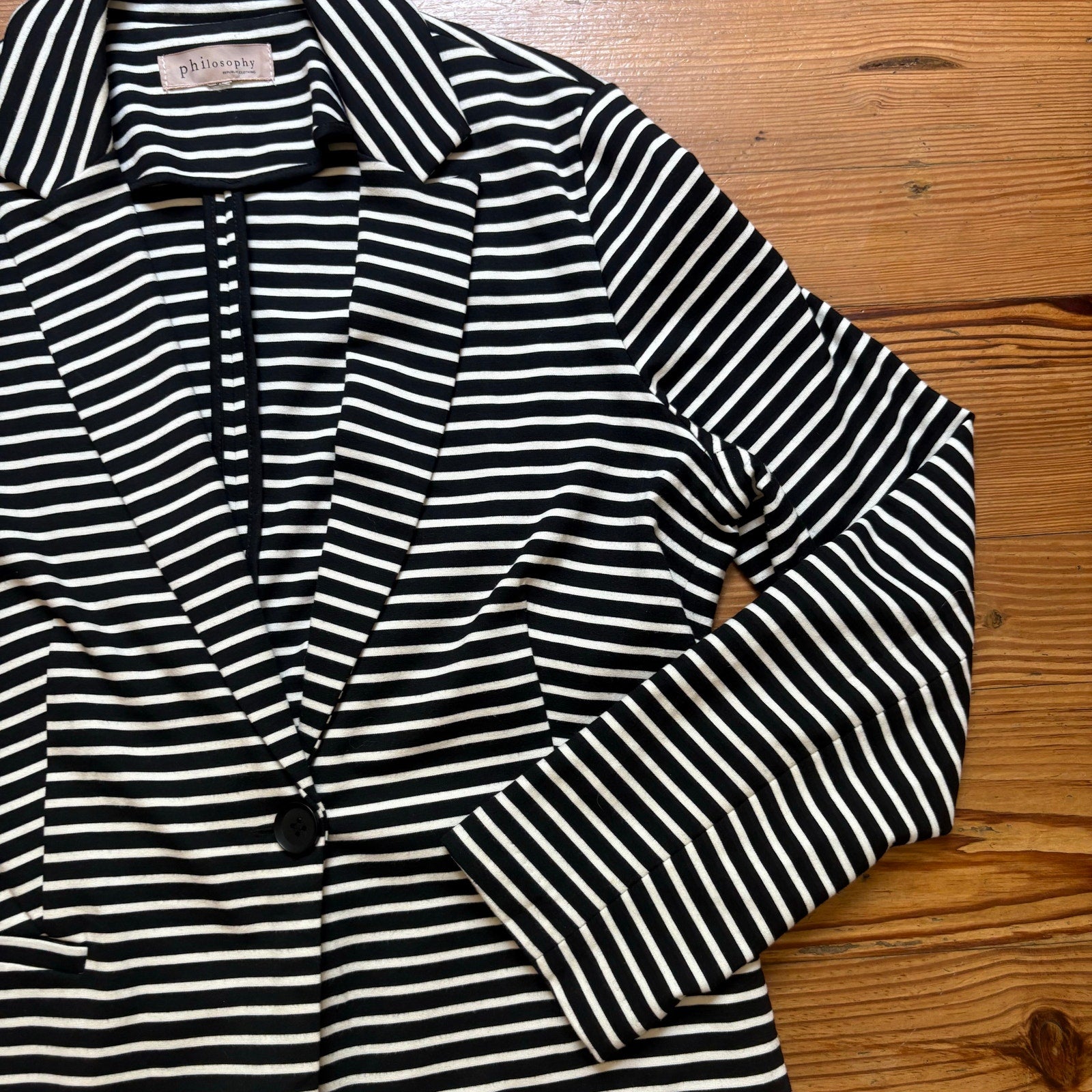 Philosophy black white horizontal striped button cotton blazer SIZE XL