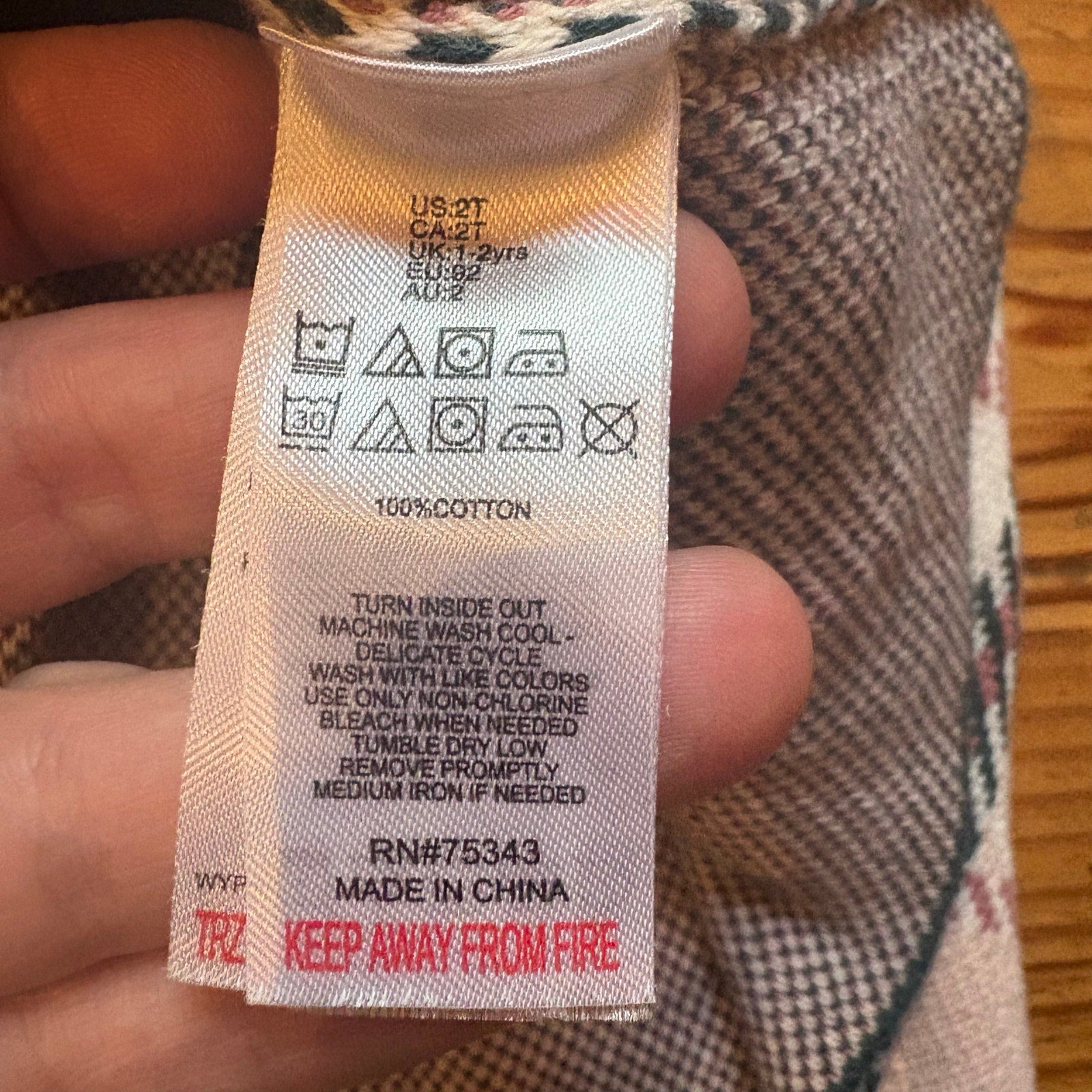Pink Teal plaid cotton elastic waistband flare toddler skirt SIZE 2T