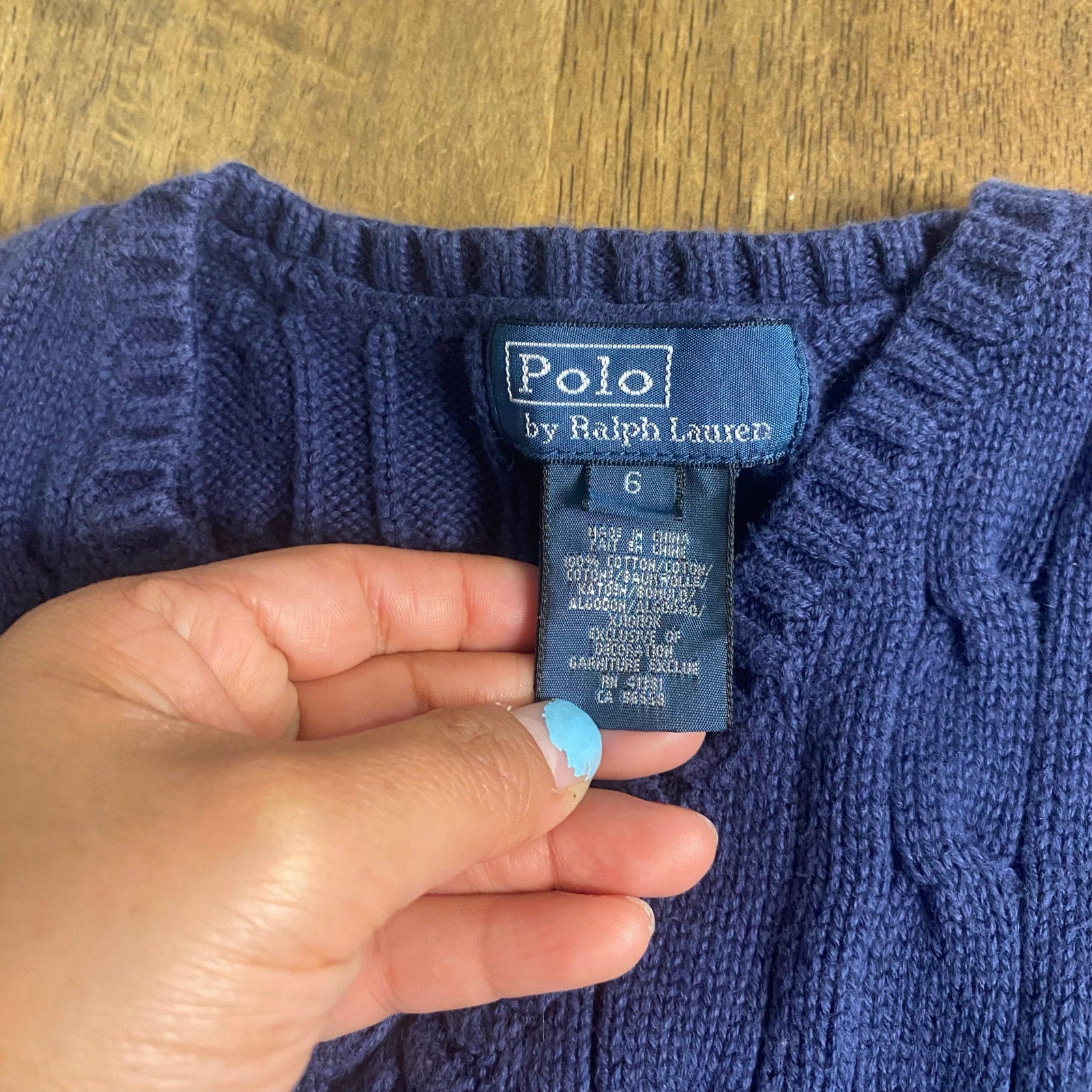 Item: Polo Ralph Lauren dark navy cable knit v neck pullover boys sweater vest SIZE 6