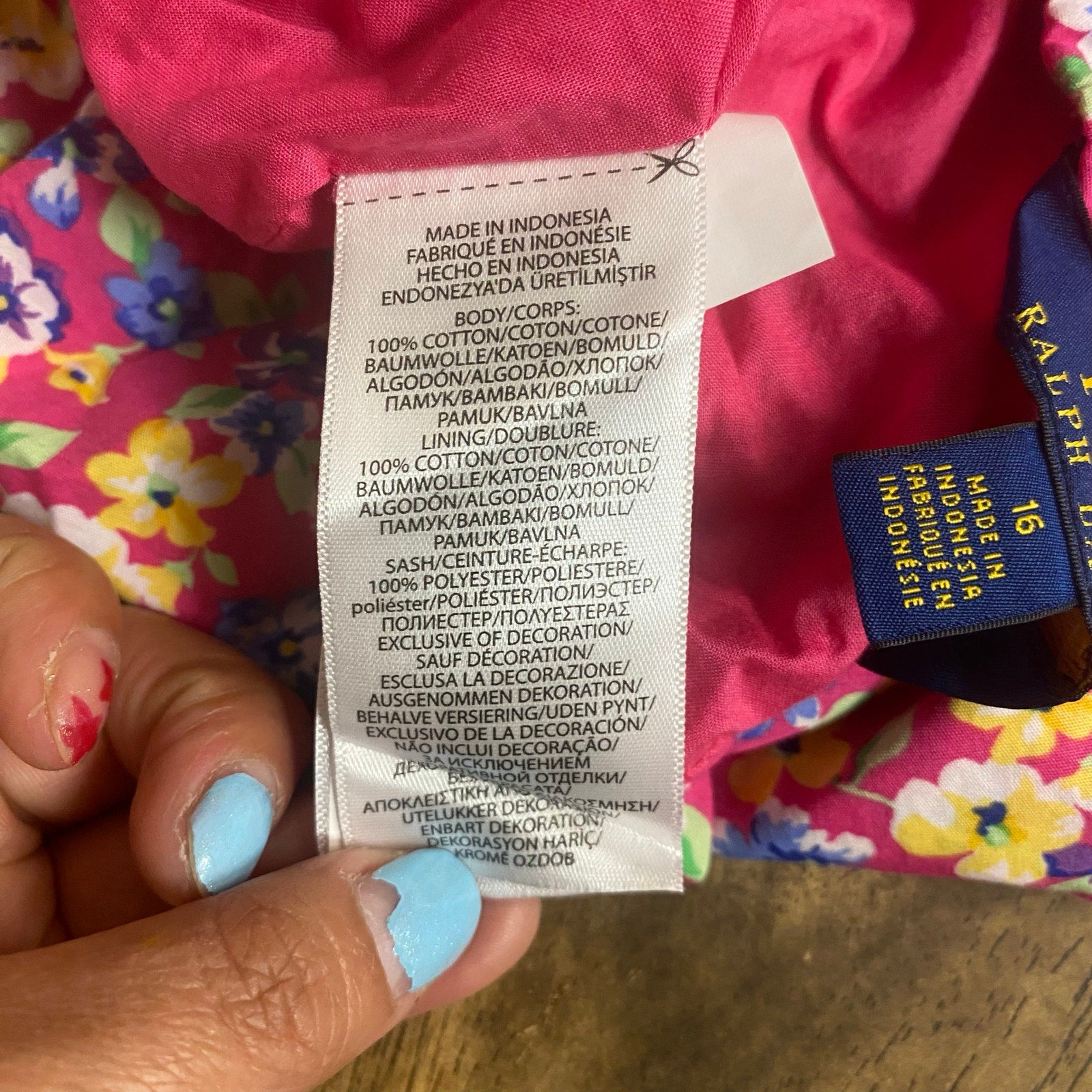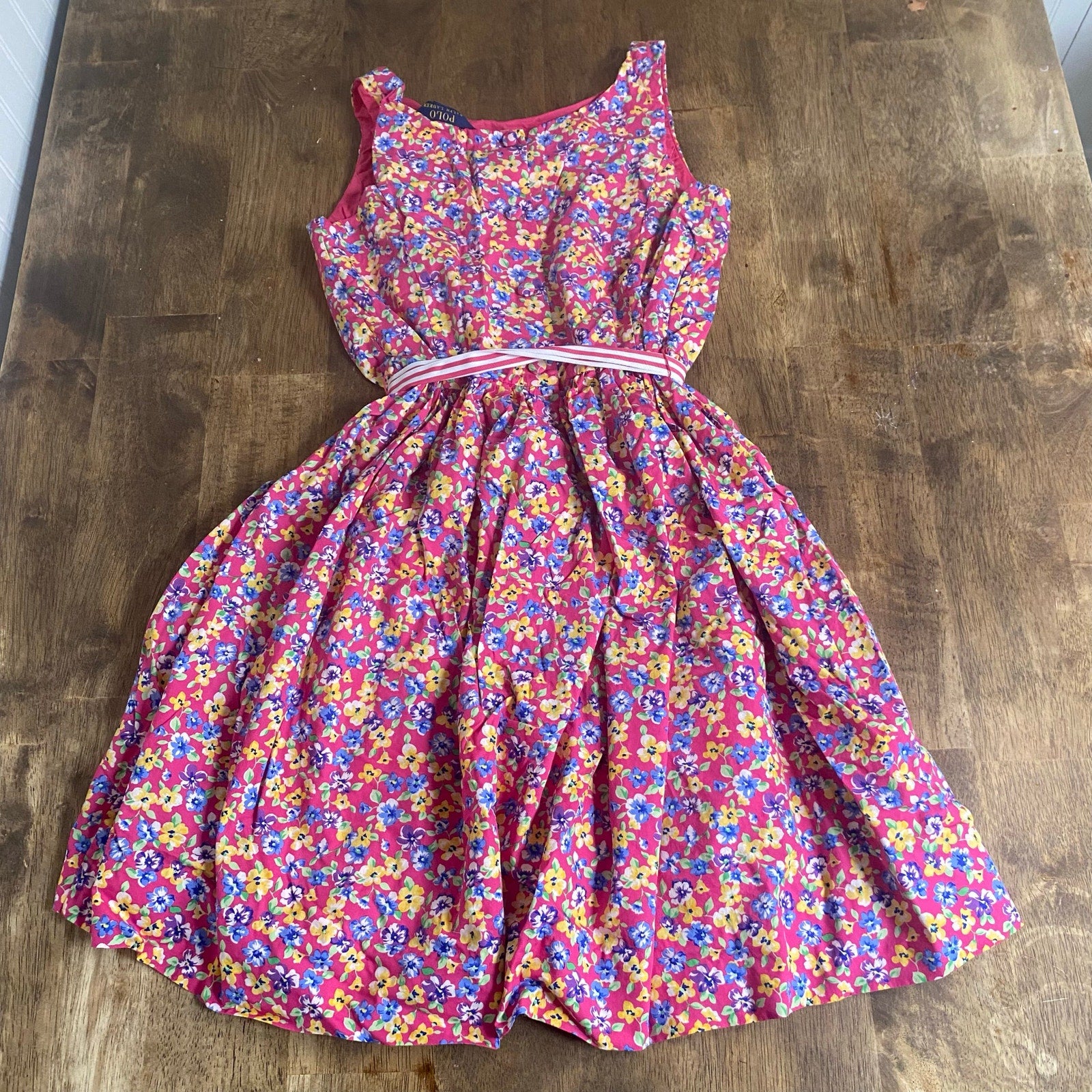 Item: Polo Ralph Lauren pink floral fit flare tank tie waist dress SIZE 16