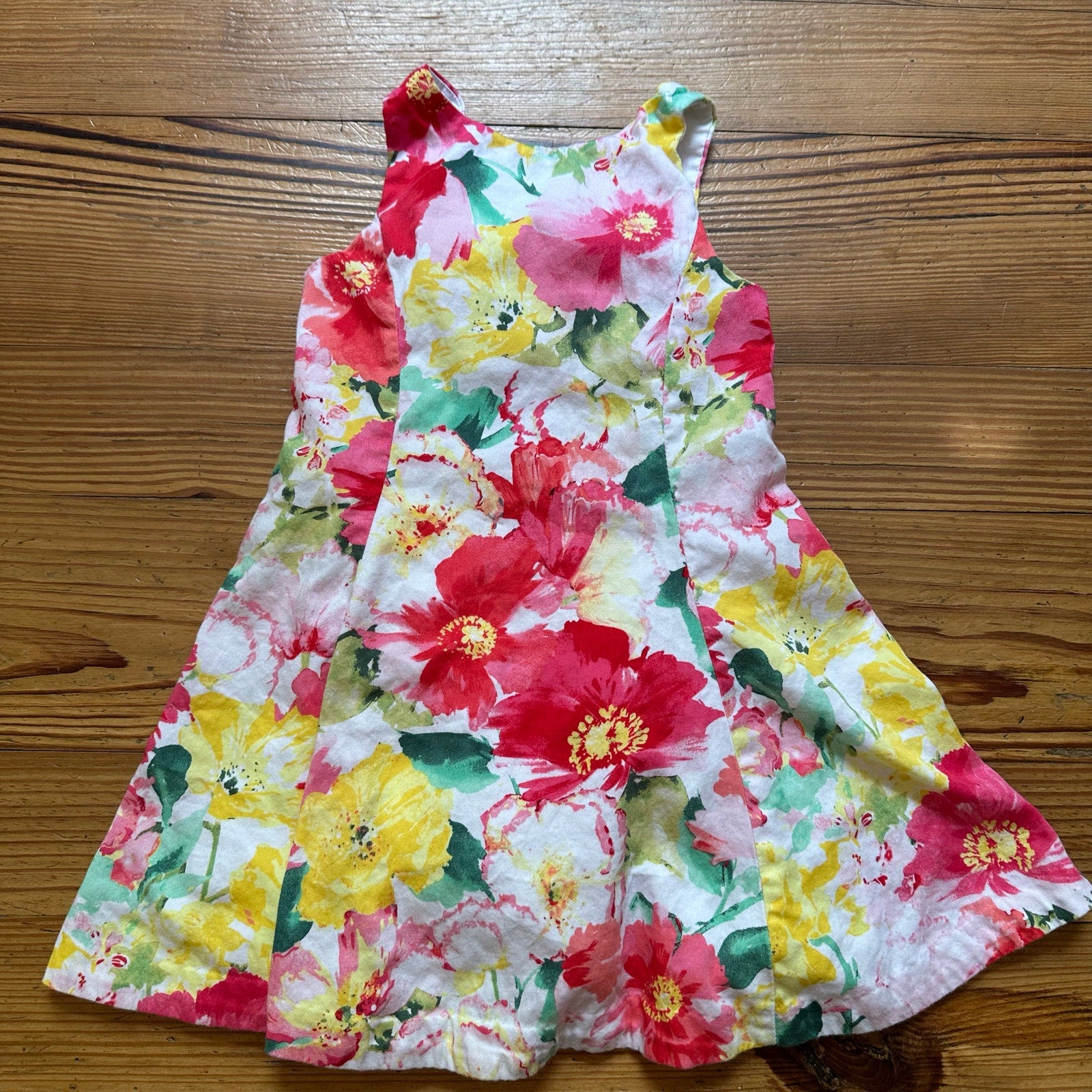 Polo Ralph Lauren pink yellow floral sleeveless flare button back dress SIZE 3T