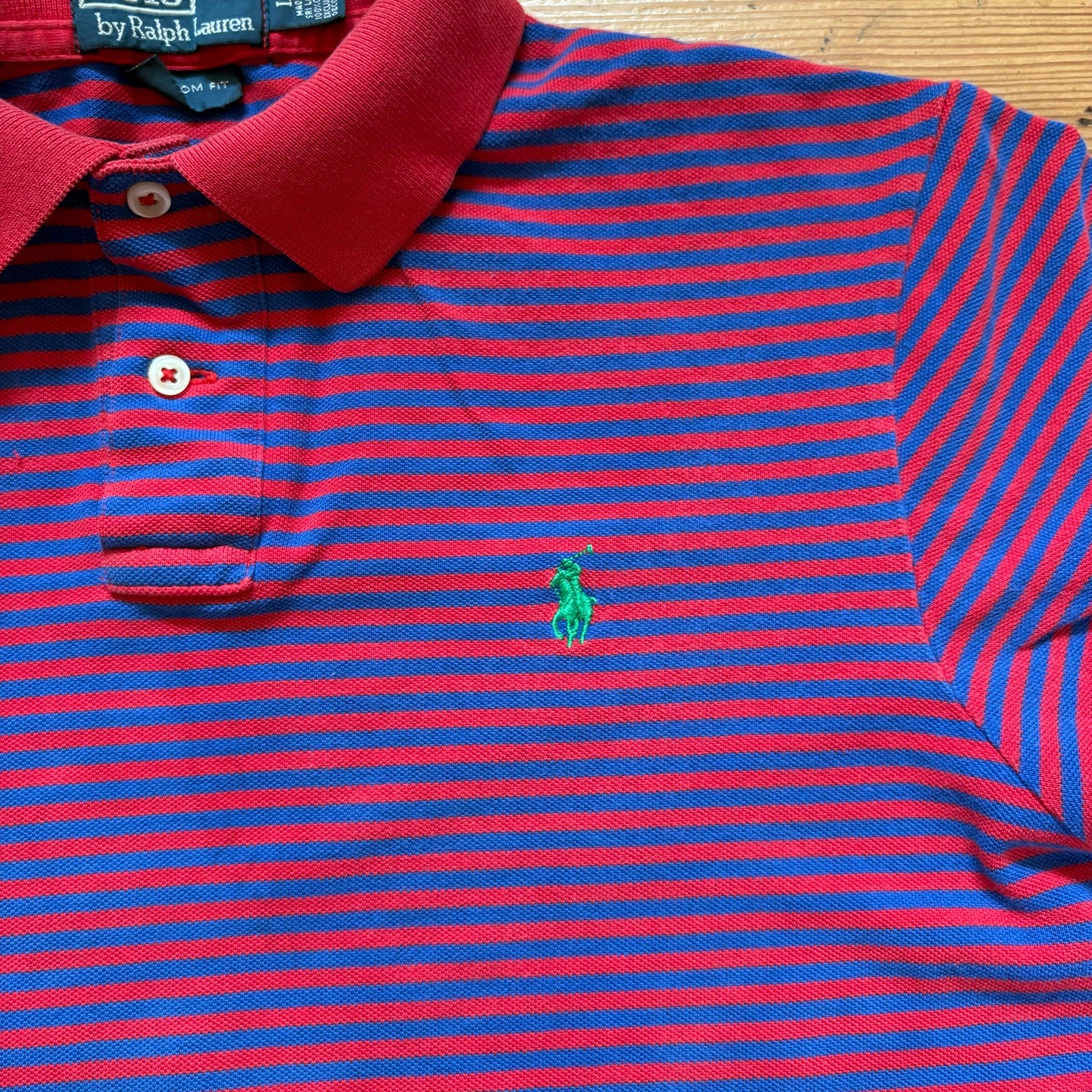 Polo Ralph Lauren red blue striped short sleeve mens polo shirt SIZE L