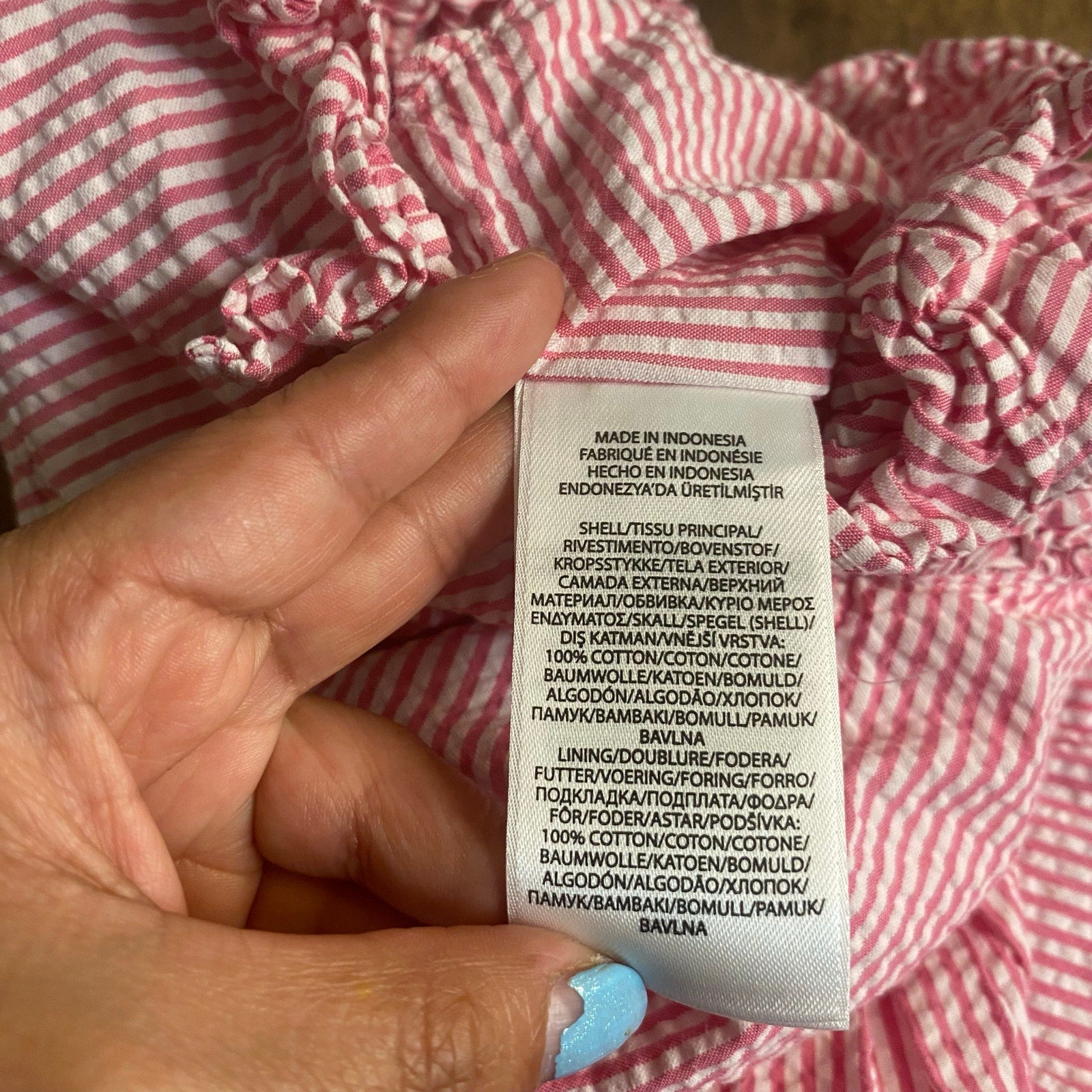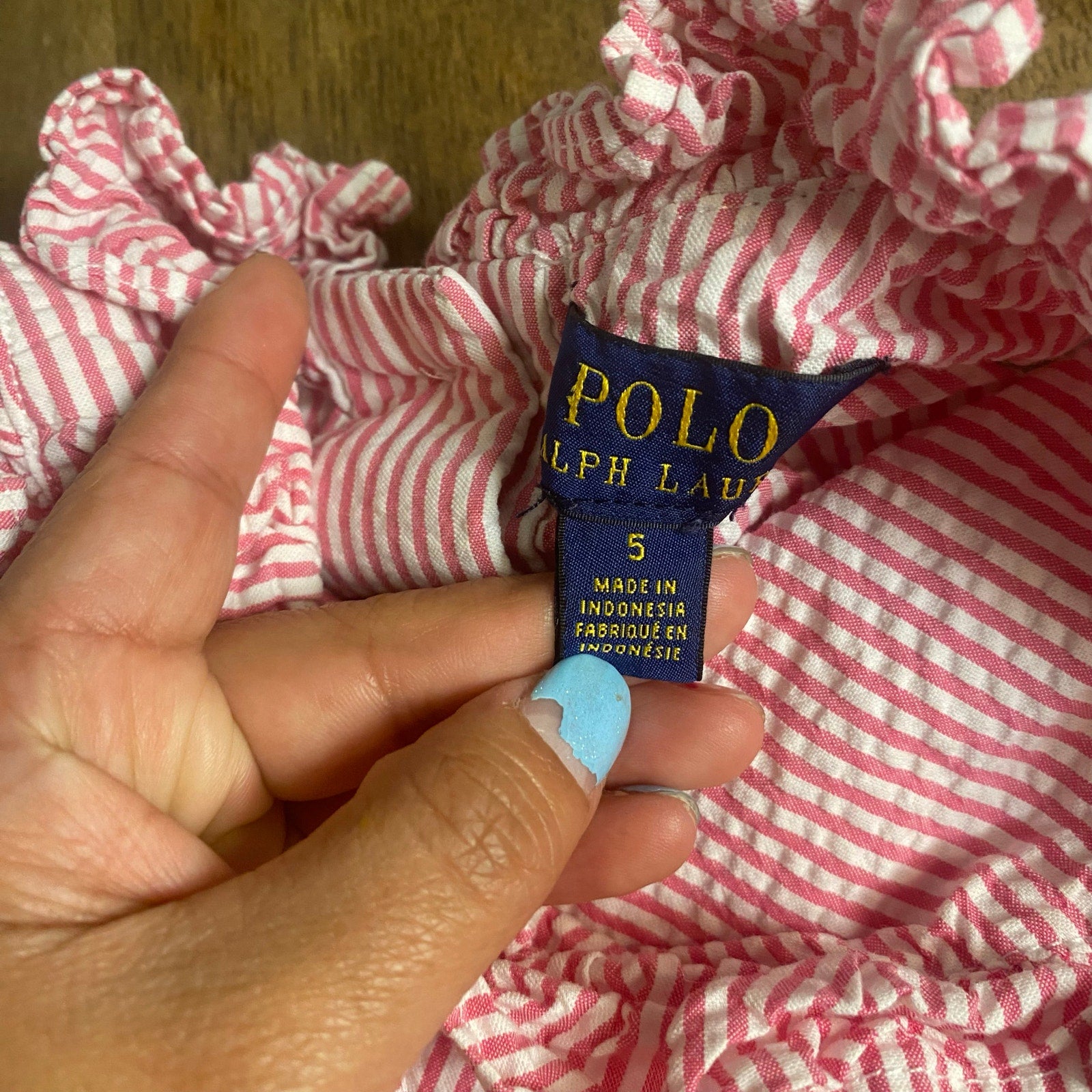 Item: Polo Ralph Lauren red white seersucker ruffle collar tiered girls dress SIZE 5