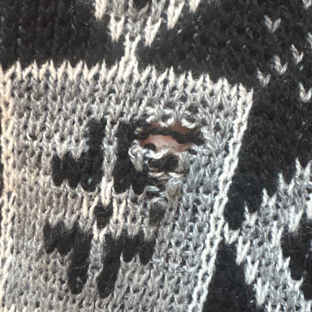 Pomodoro VTG black white knit geometric crew grandpa sweater SIZE XL
