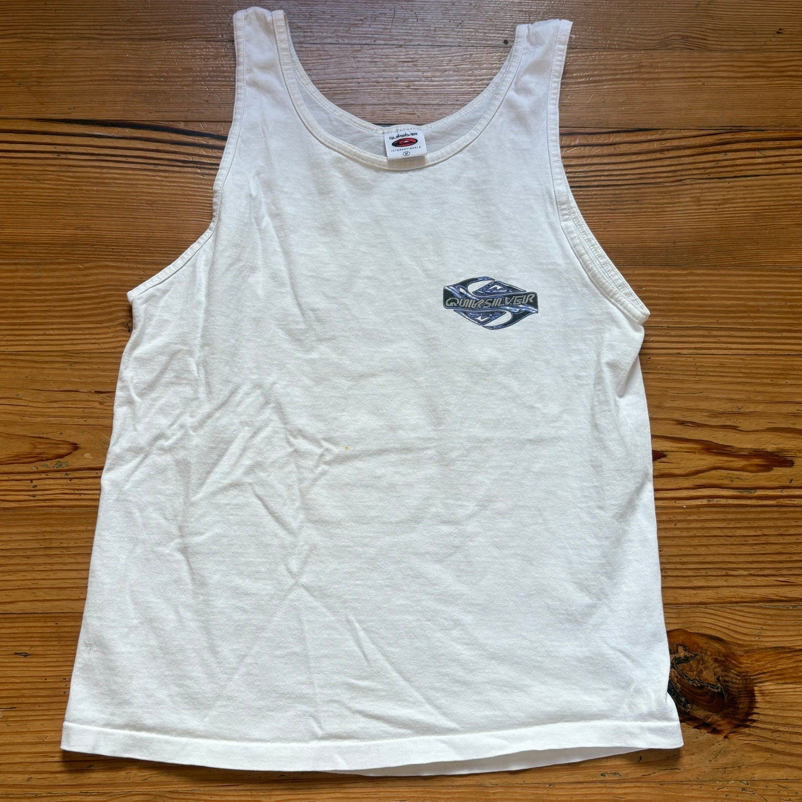 Quiksilver white y2k blue graphic cotton tank SIZE M