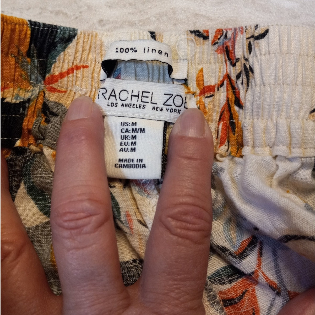 Item: Rachel Zoe floral wide leg cropped linen pull on elastic waist pants SIZE M