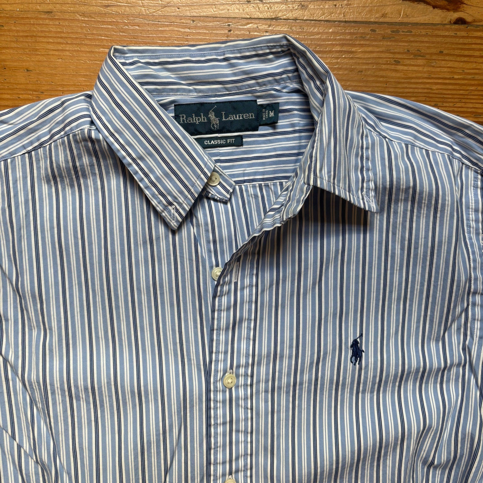 Ralph Lauren blue striped classic fit mens long sleeve button up shirt SIZE M