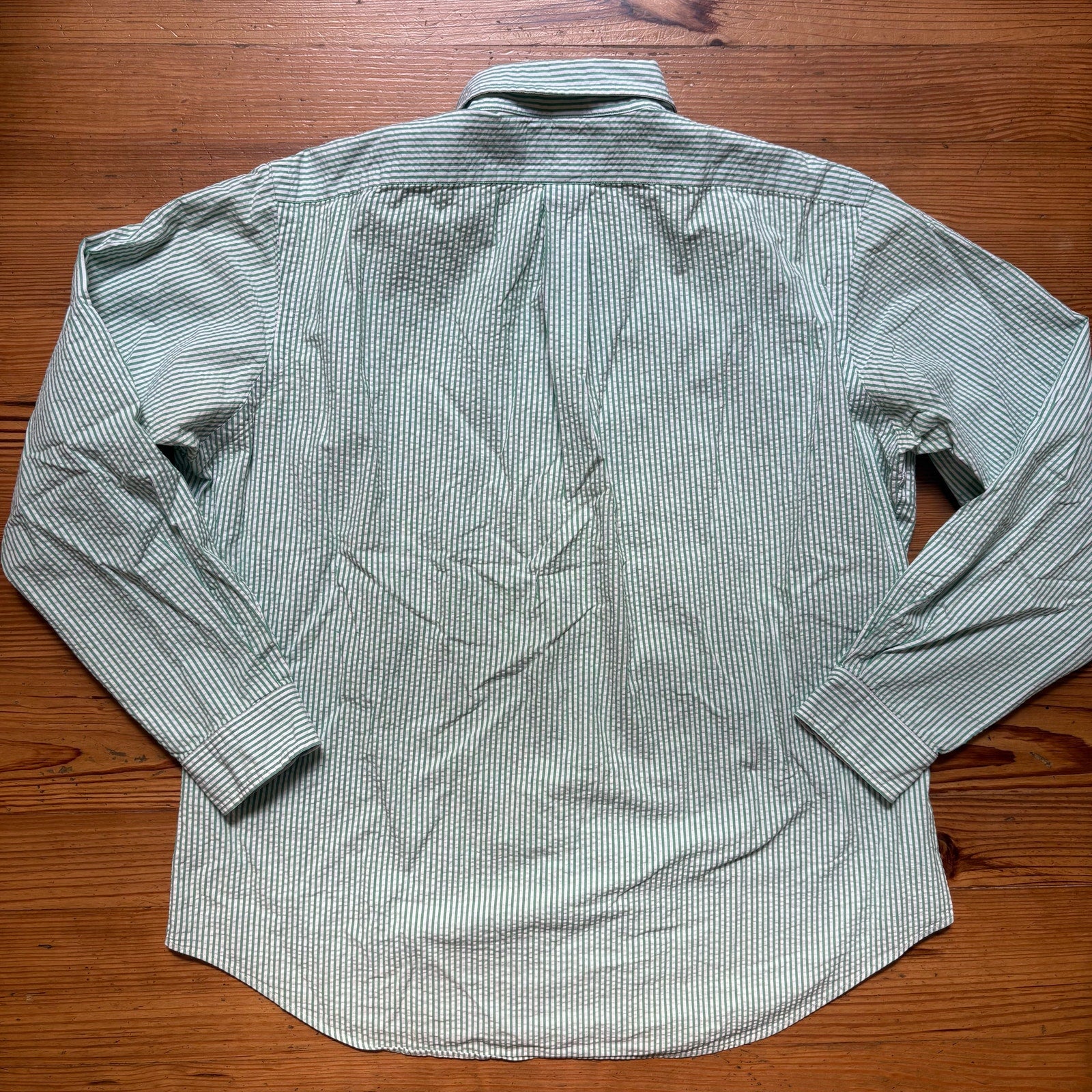 Ralph Lauren green white striped seersucker long sleeve dress shirt SIZE XL
