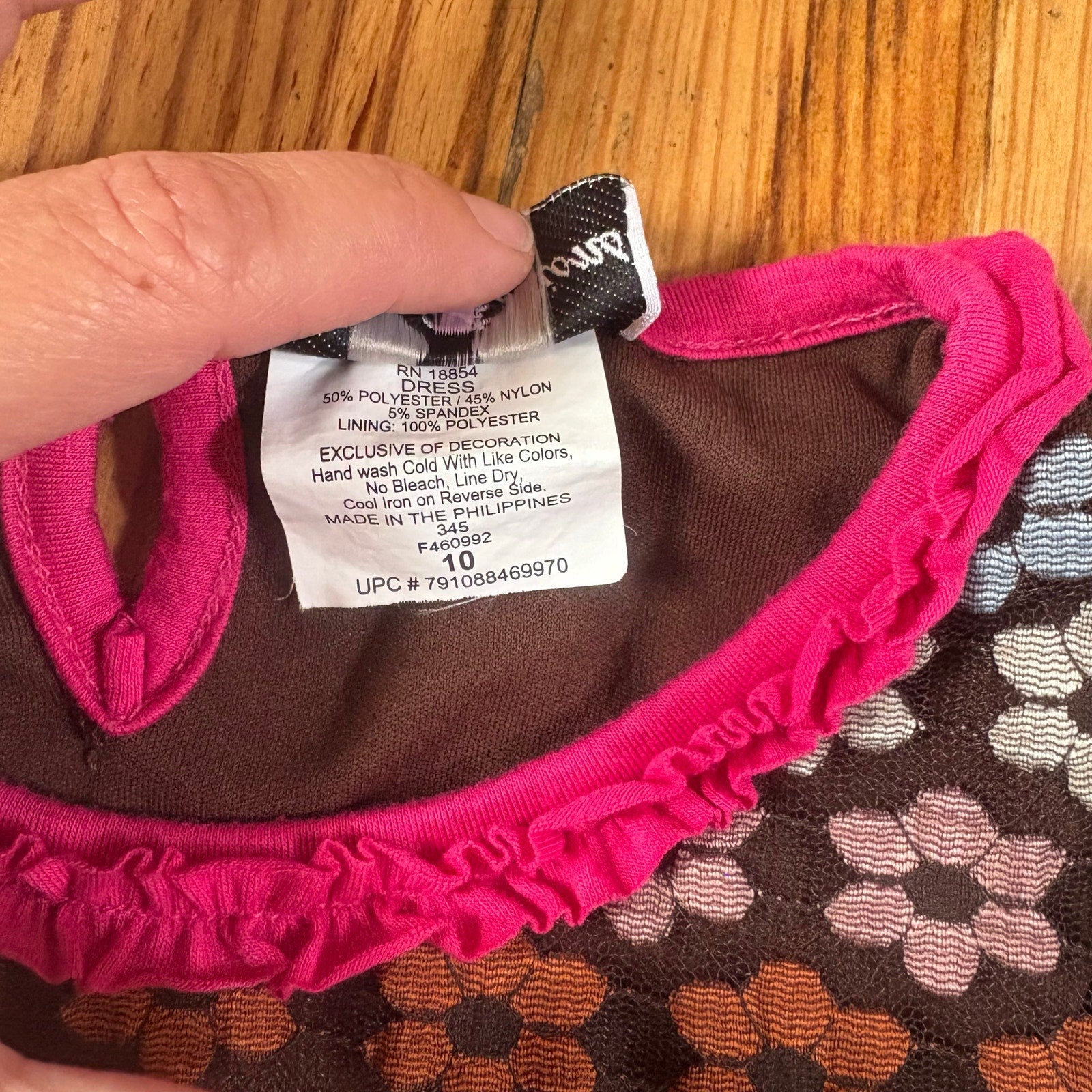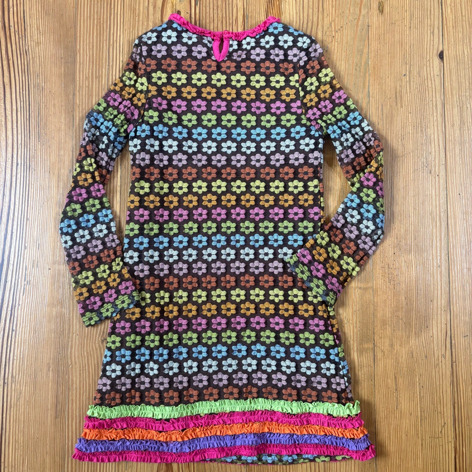 Rare Editions retro brown floral sheer sleeve ruffle bottom girls dress SIZE 10