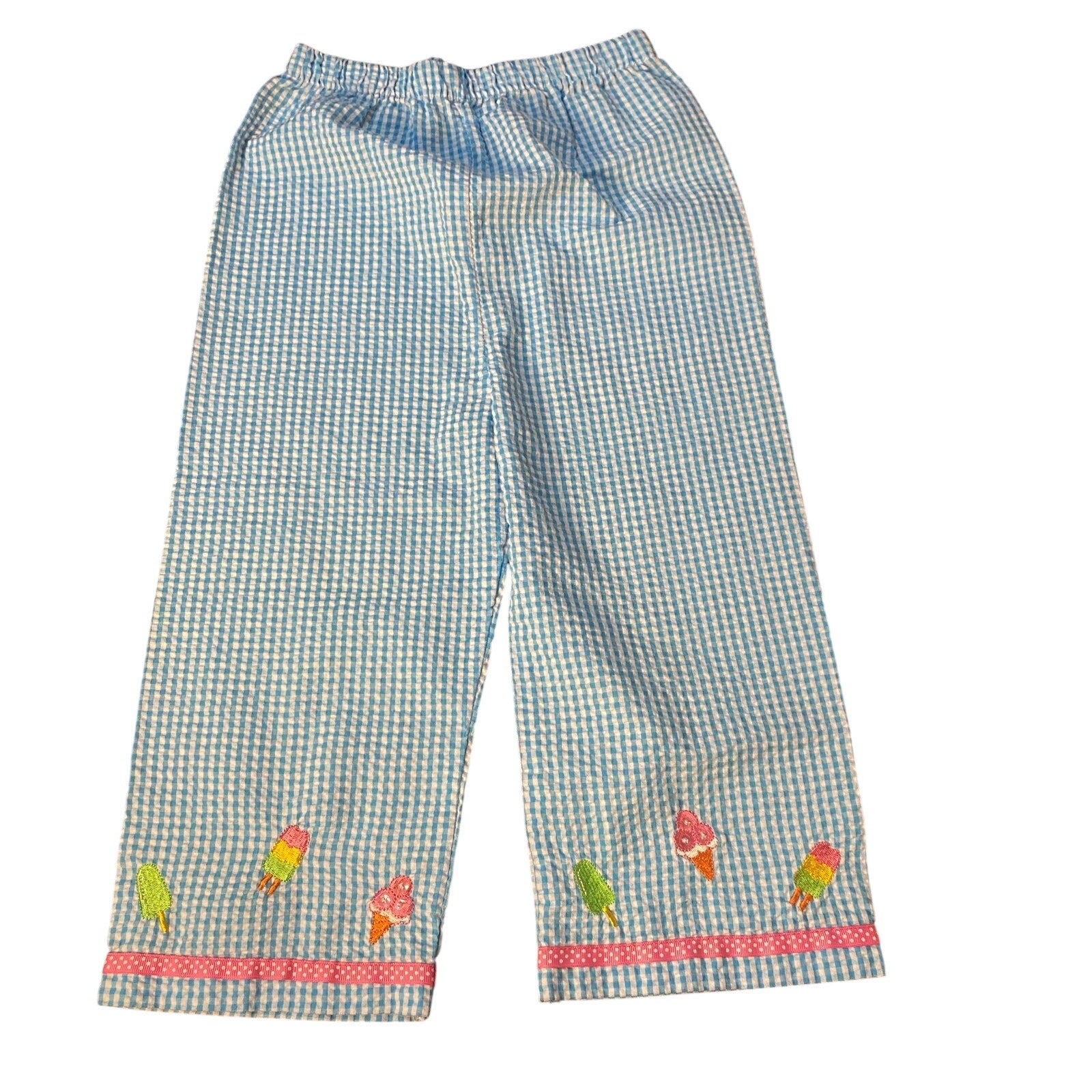 Item: Rare Editions blue gingham ice cream embroidered tank shirt pant set SIZE 6