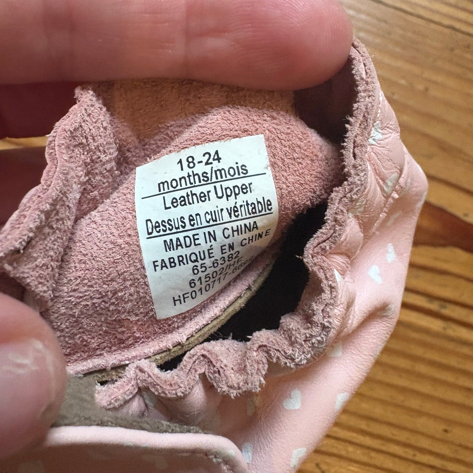 Item: Robeez pink white polka dot leather penguin embroidered baby shoes SIZE 18-24M