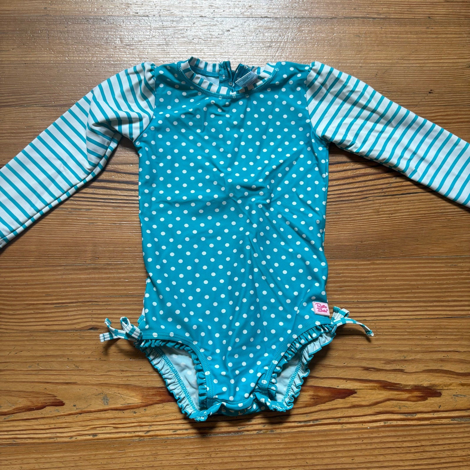 Ruffle Butts blue white polka dot striped long sleeve rashguard swimsuit SIZE 3T