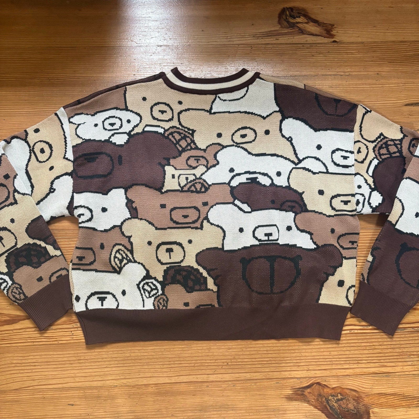 Shein brown cream teddy bear kidcore cropped crew sweater SIZE L