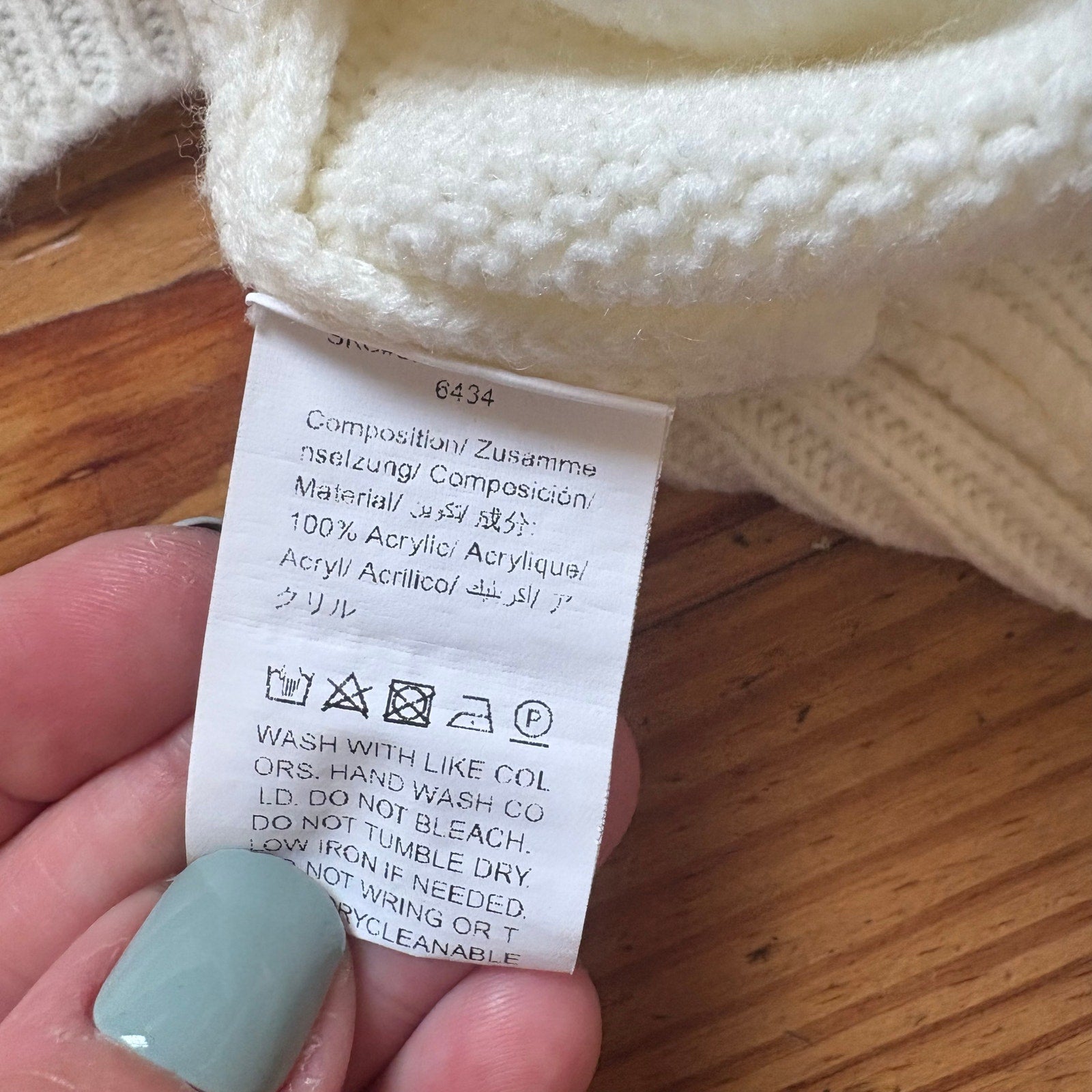 ivory, cropped, sad teddy bear patches, bubble sleeve, acrylic