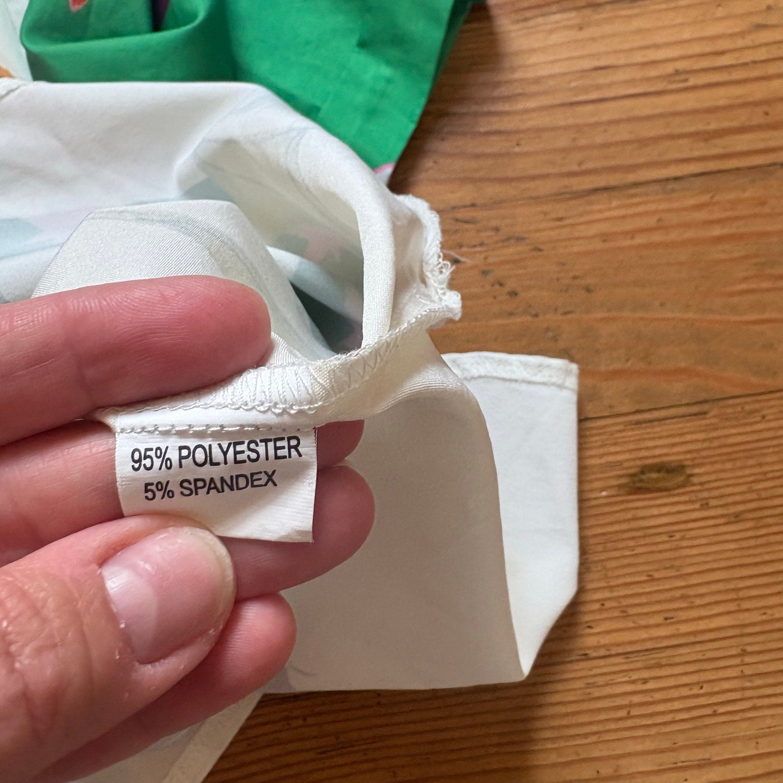 white and green mythical dragon sun moon graphics, short sleeve, button up, poly spandex blend