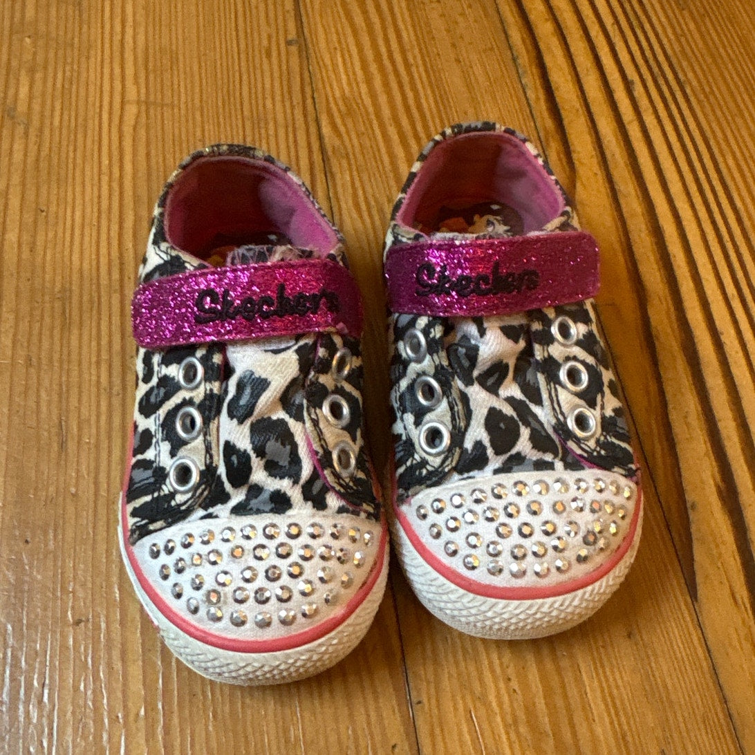 Item: Skechers Twinkle Toes cheetah pink glitter canvas light up sneakers SIZE 5