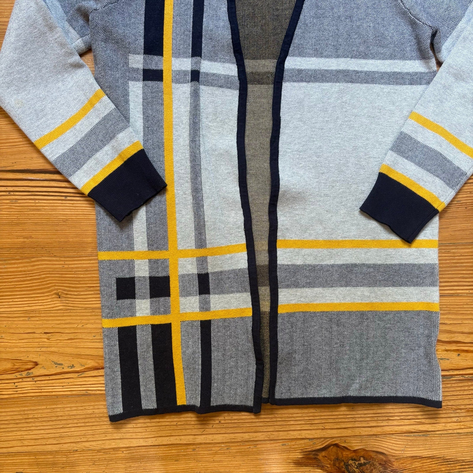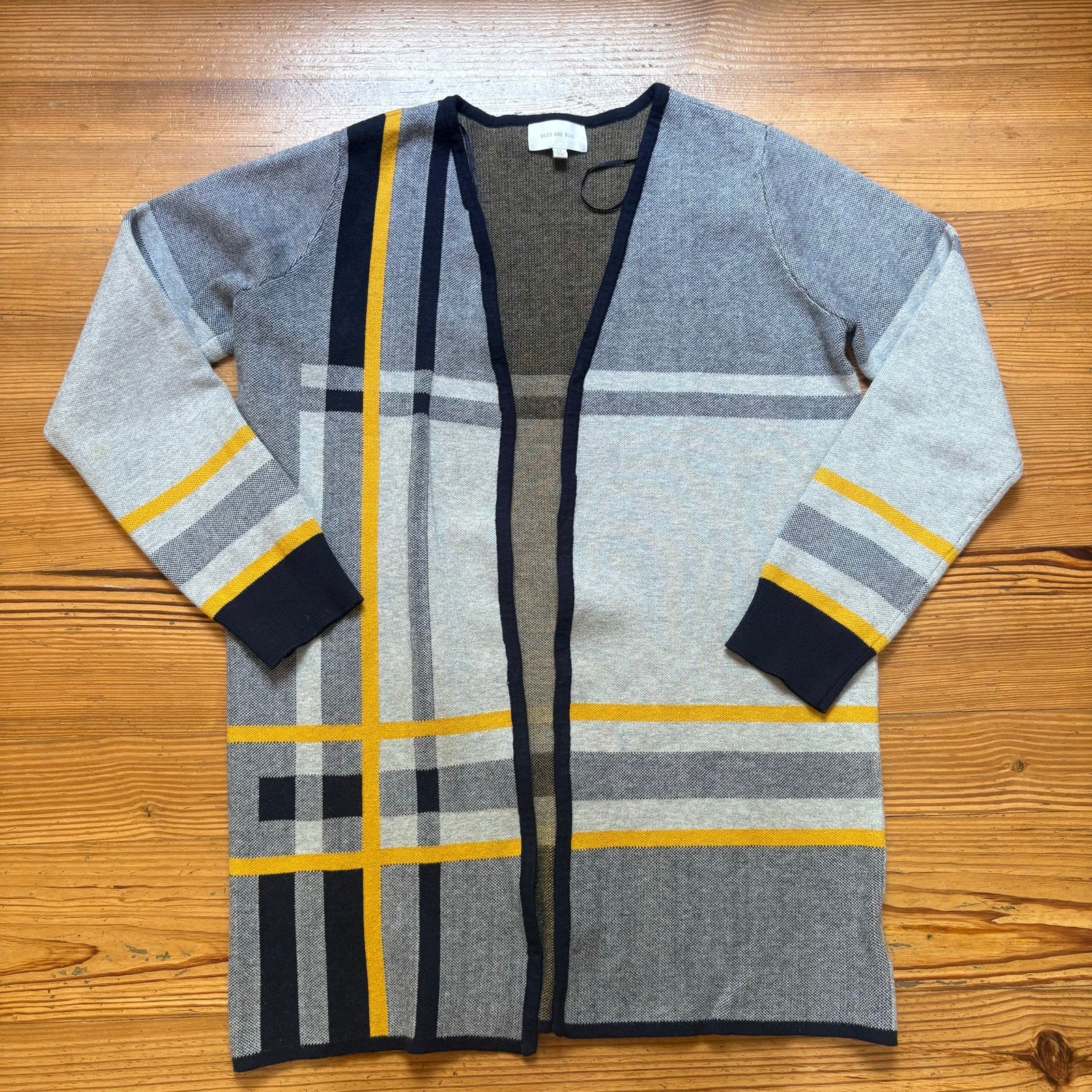 Skies Are Blue gray blue striped geometric open cardigan sweater SIZE M