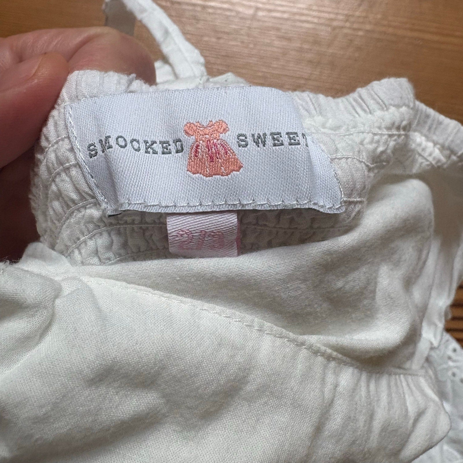 Item: Smocked Sweets white eyelet ruffle toddler adjustable tank top SIZE 2T
