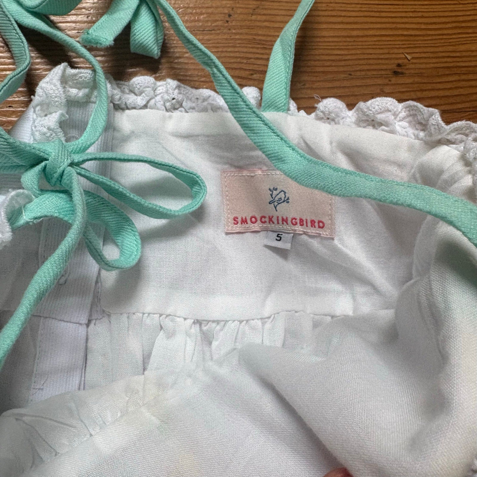 Smockingbird white colorful smocked tie strap girls cotton dress SIZE 5