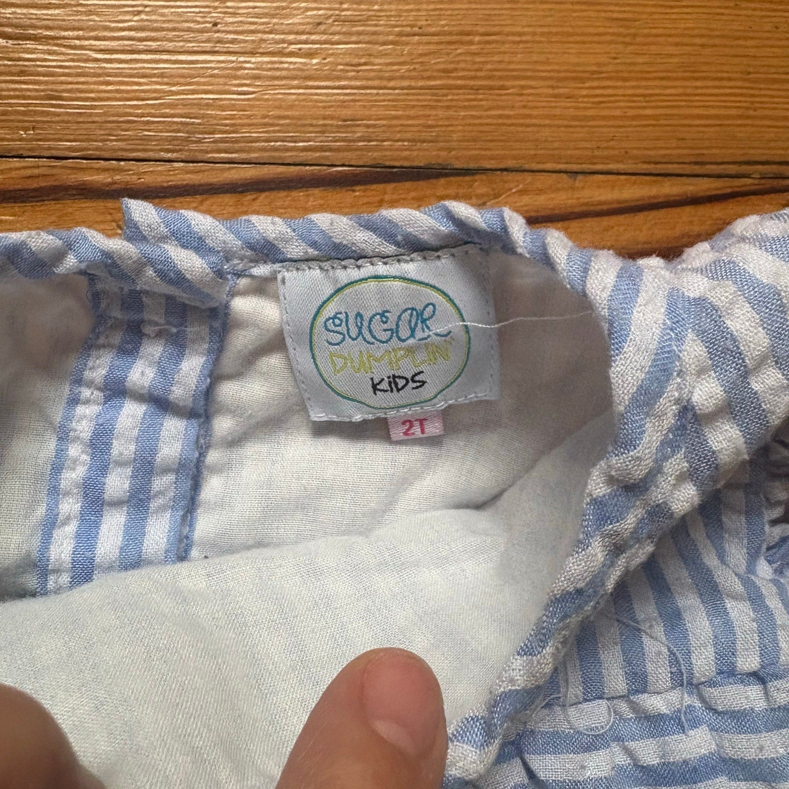 Item: Sugar Dumpling Kids white blue seersucker ruffle sleeveless girls top SIZE 2T