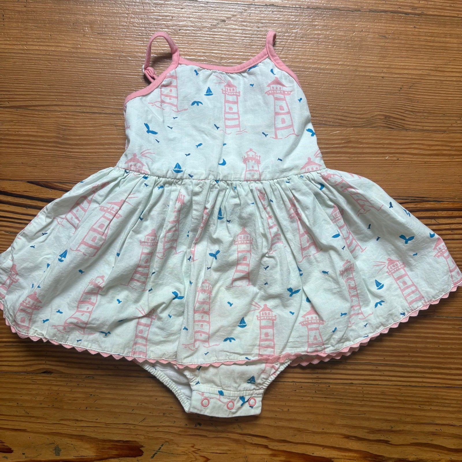 Sweet Honey white lighthouse nautical smocked toddler bubble SIZE 2T