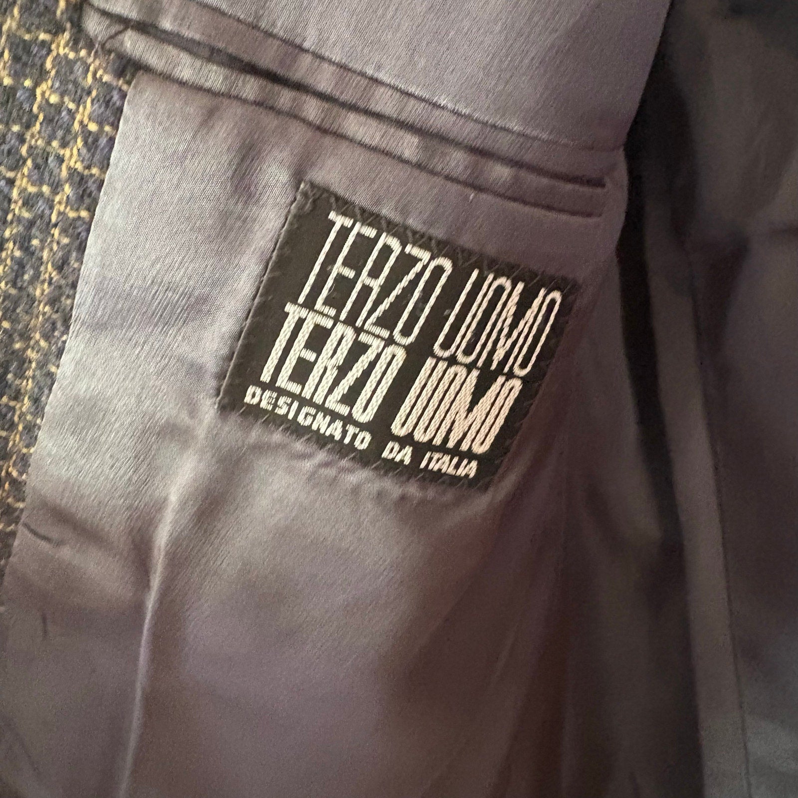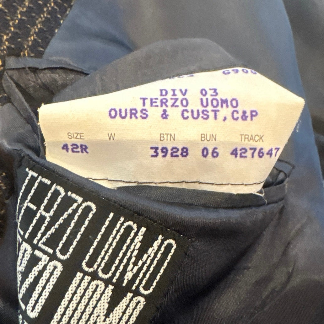 Item: Terzo Uomo vintage dark blue brown tweed mens double button sport coat SIZE 42R Made in Italy