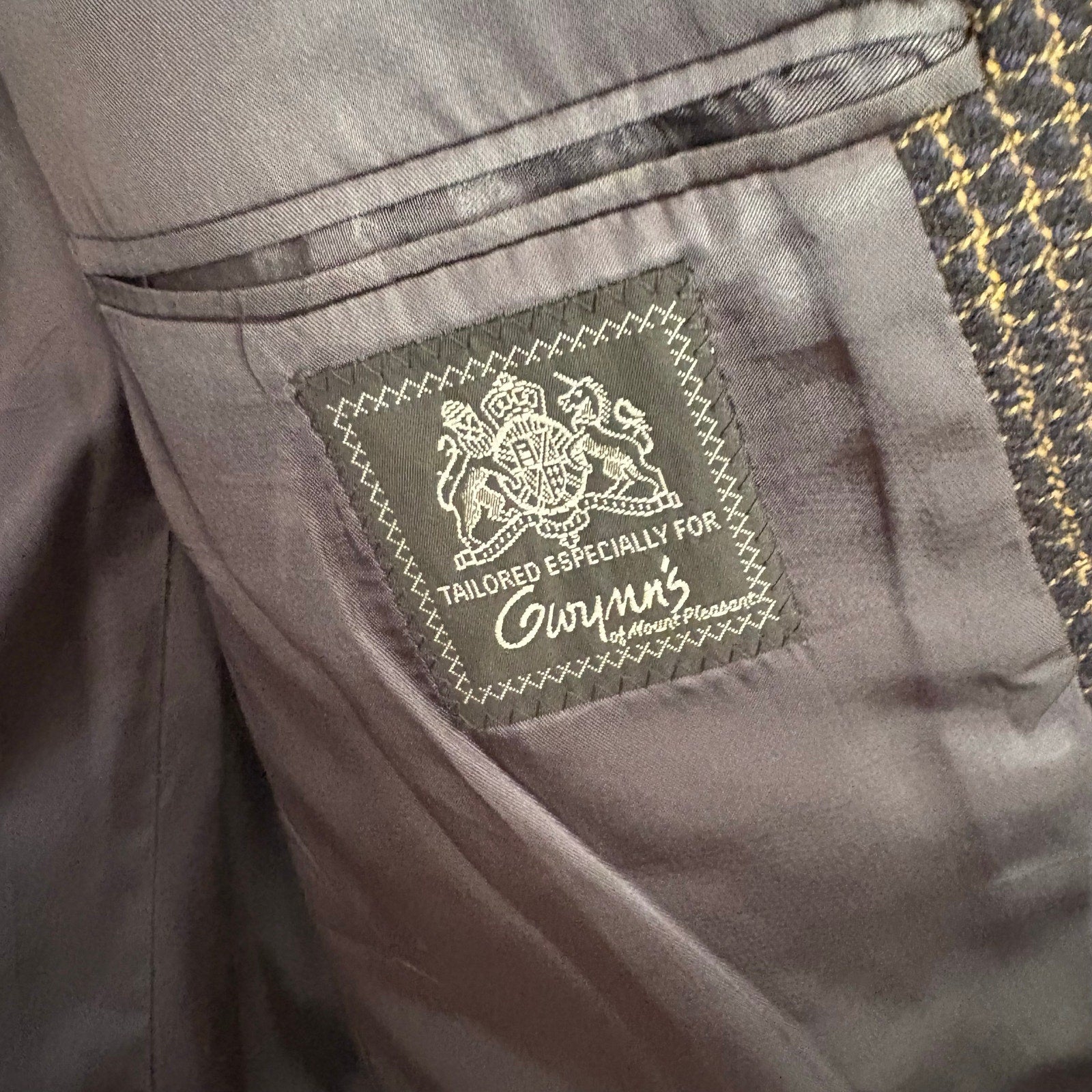 Color: dark navy with brown, tweed