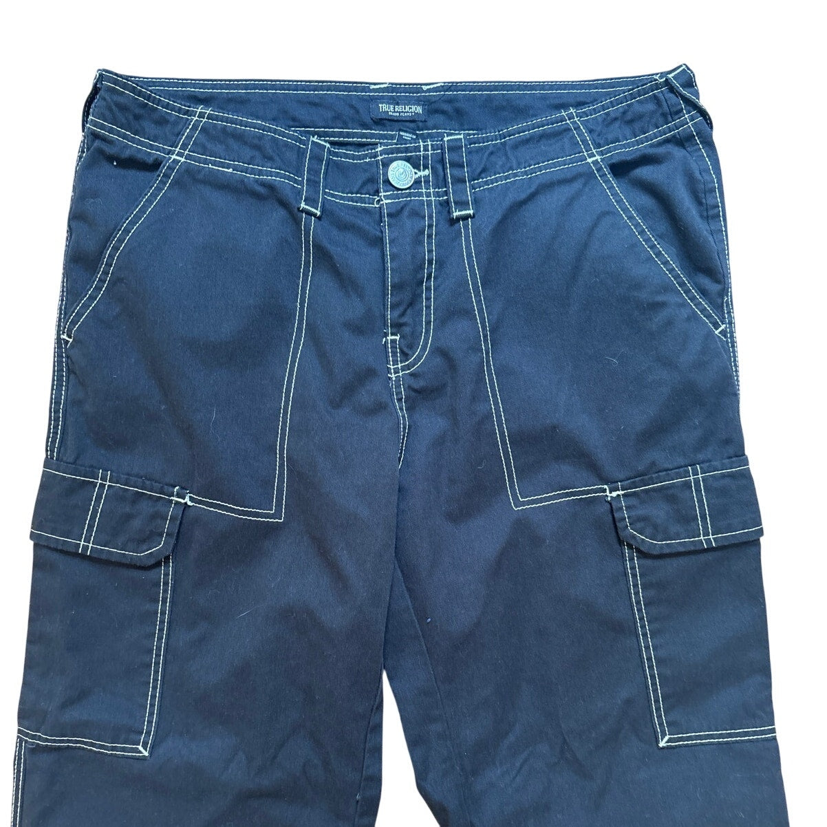 Item: True Religion black baggy cargo white stitching mens jeans SIZE 31