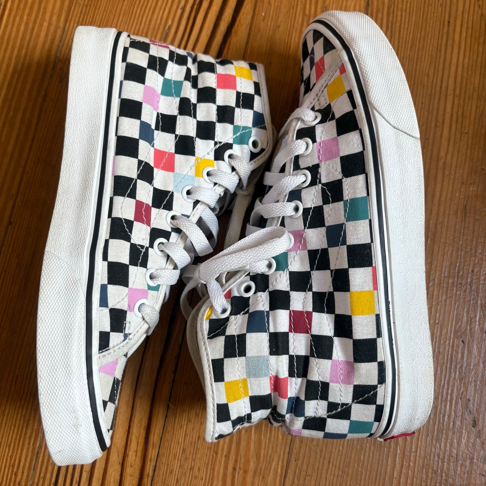 VANS black white checkered colorful high top unisex sneakers SIZE M5.5 W7