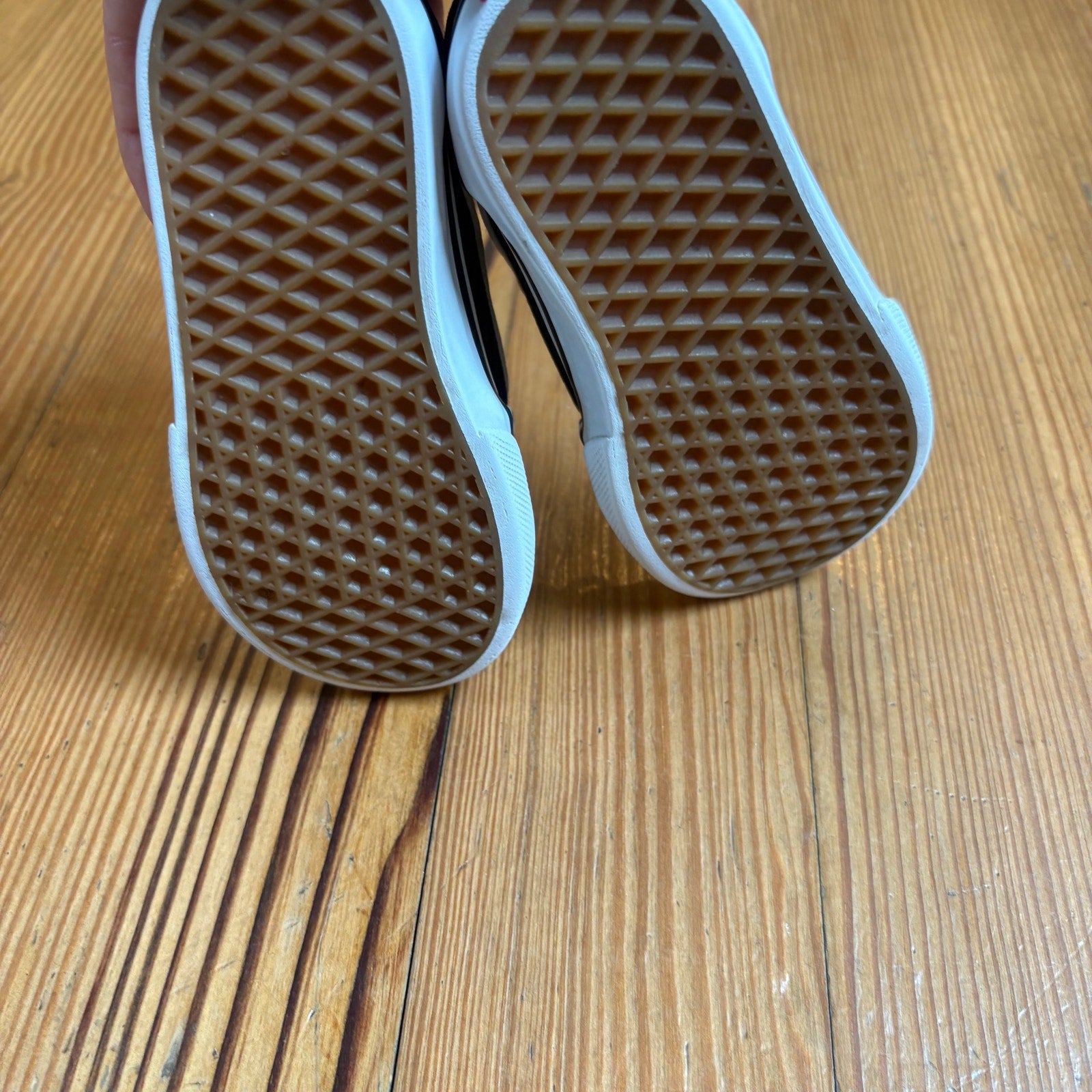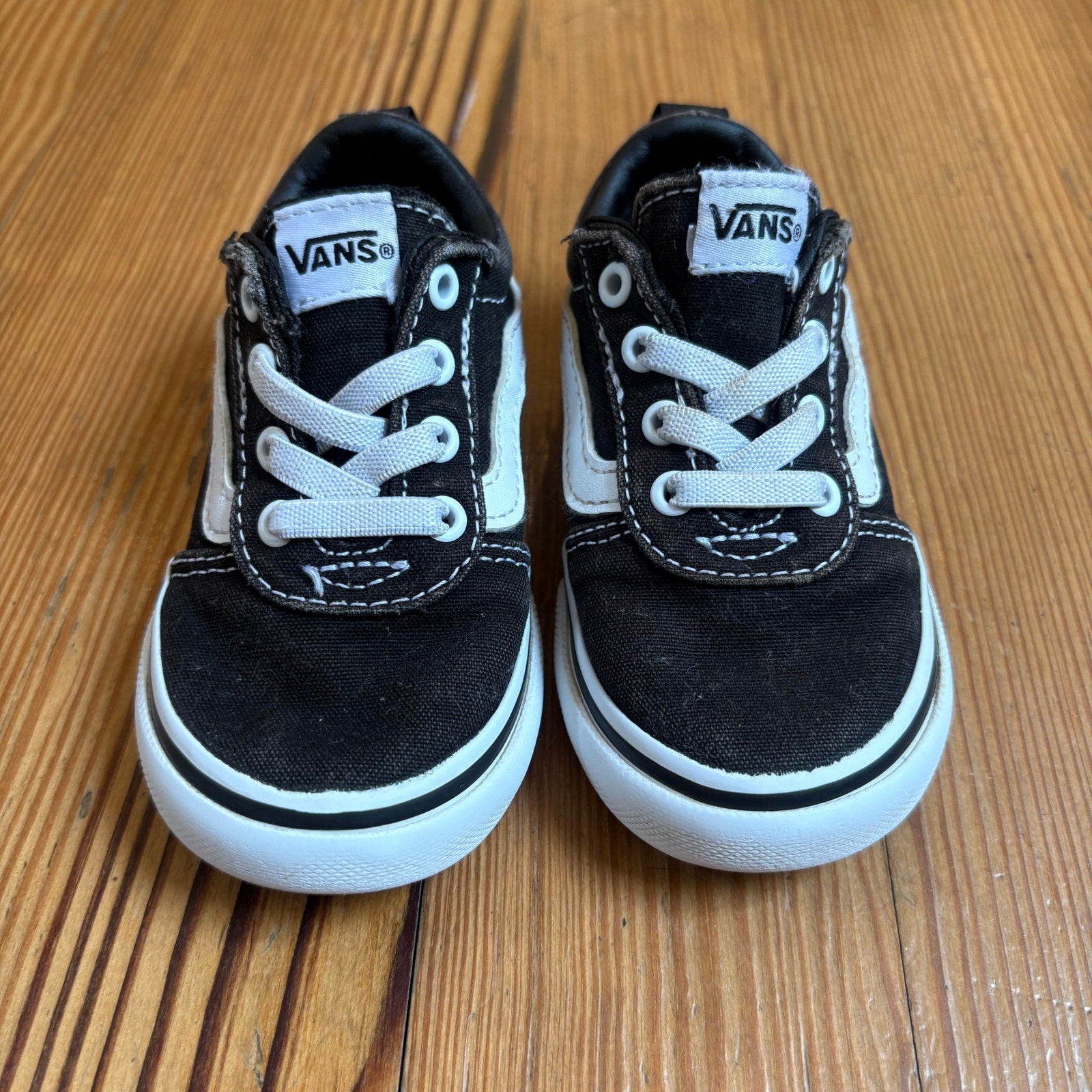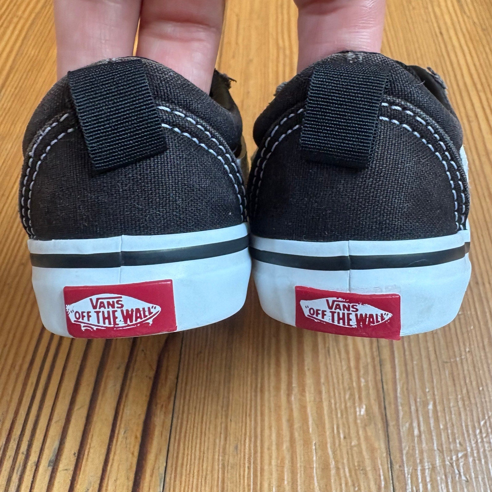 VANS black white textile classic low top toddler slip on sneakers SIZE 6