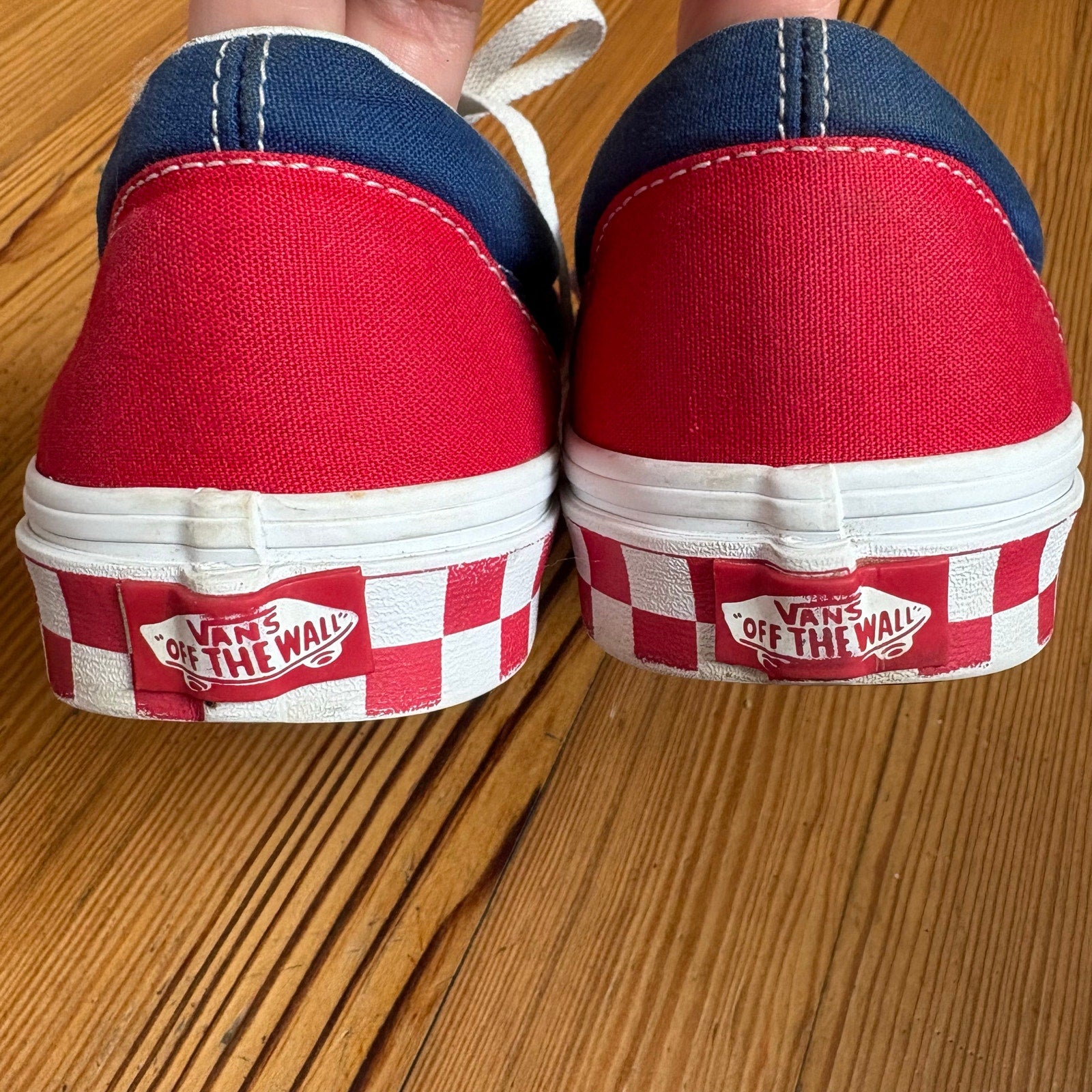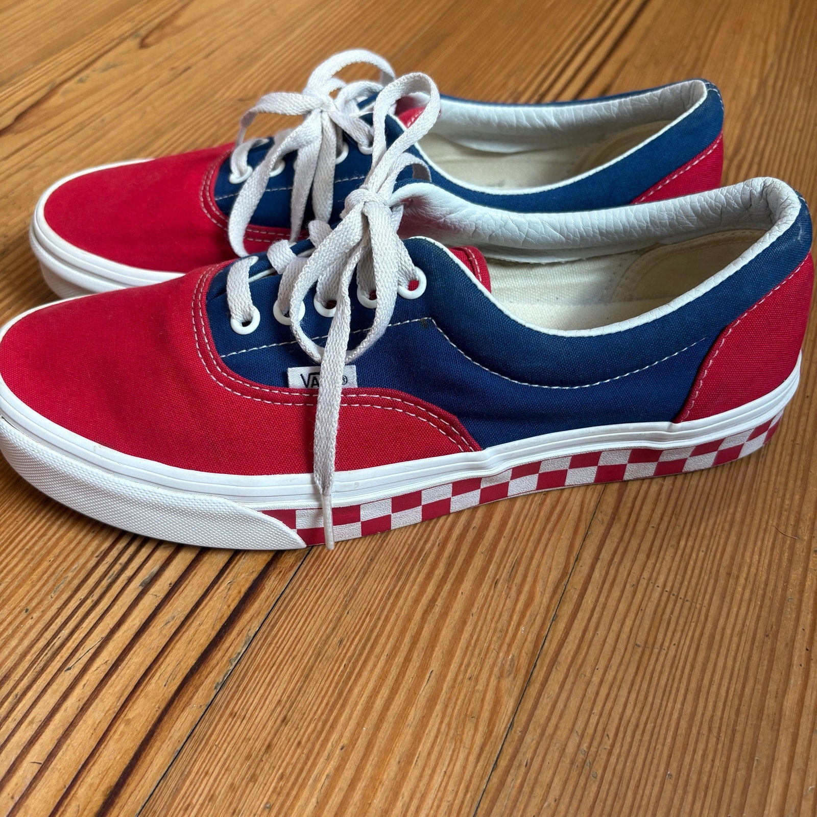 VANS red blue checkered sole low top lace unisex sneakers SIZE M9 W10.5
