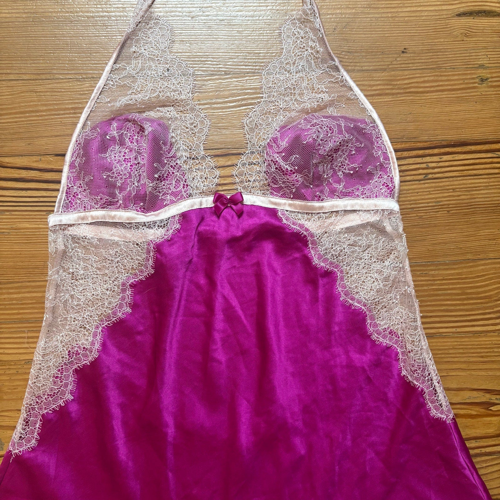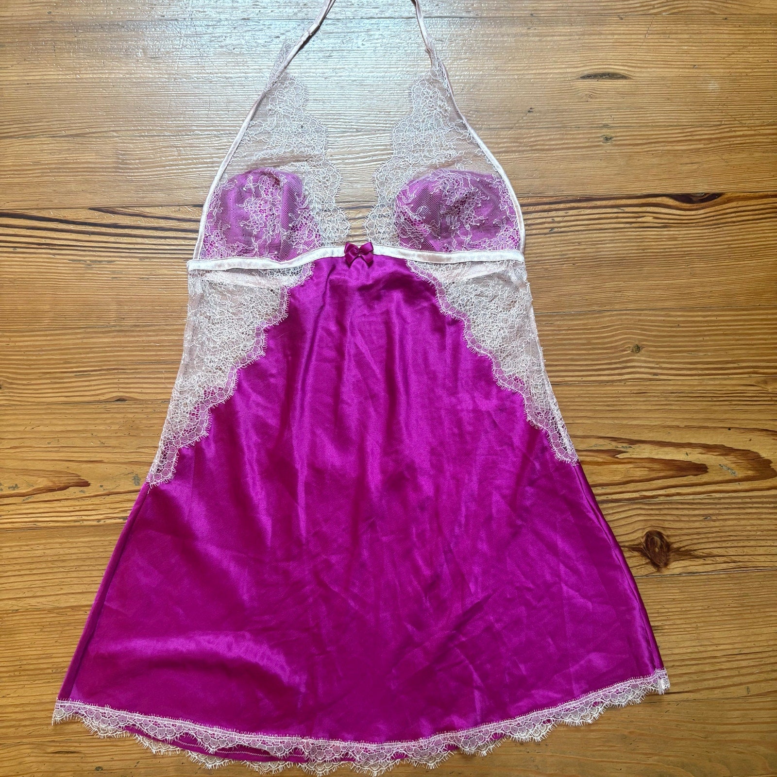 Victoria's Secret pink lace halter low back lingerie slip dress SIZE L