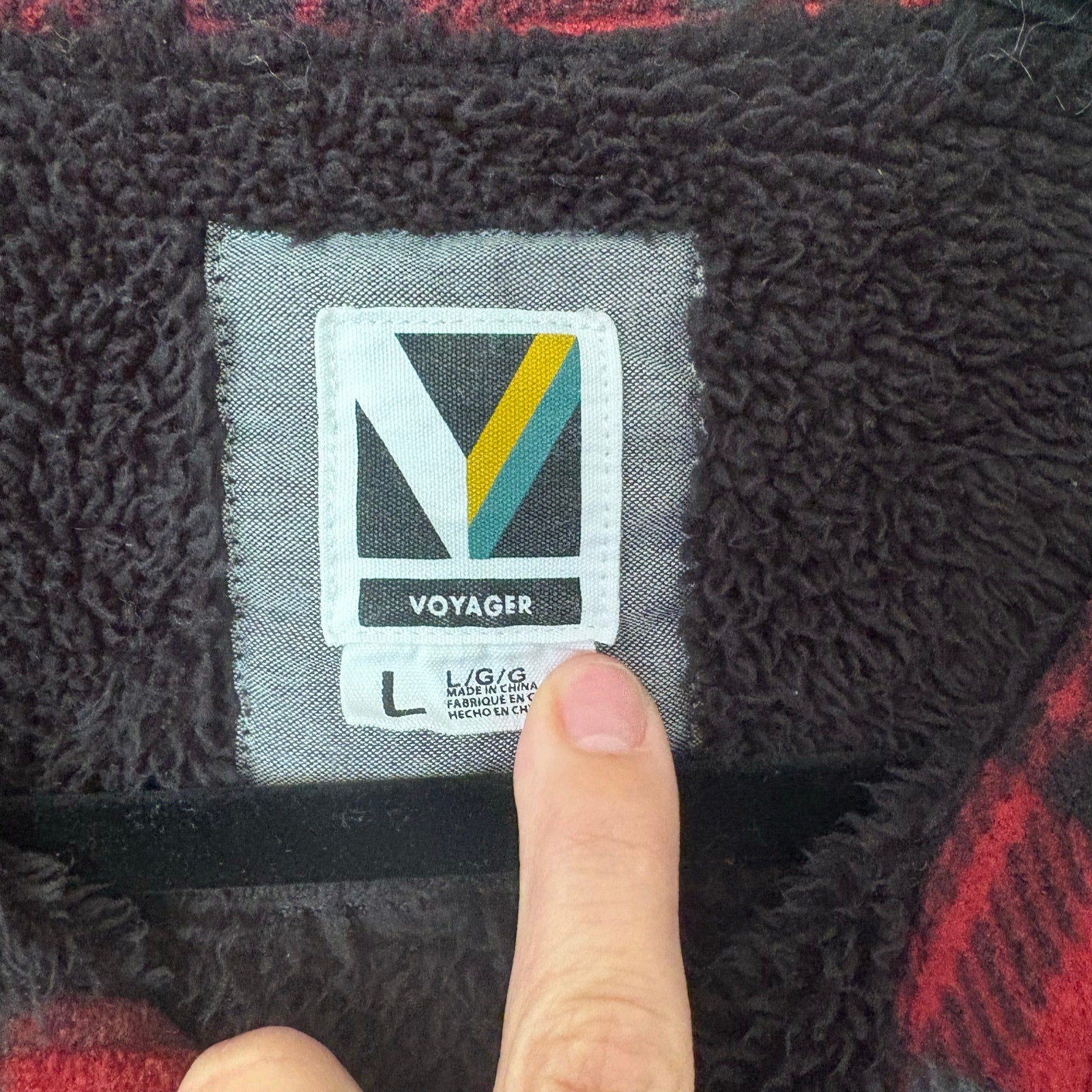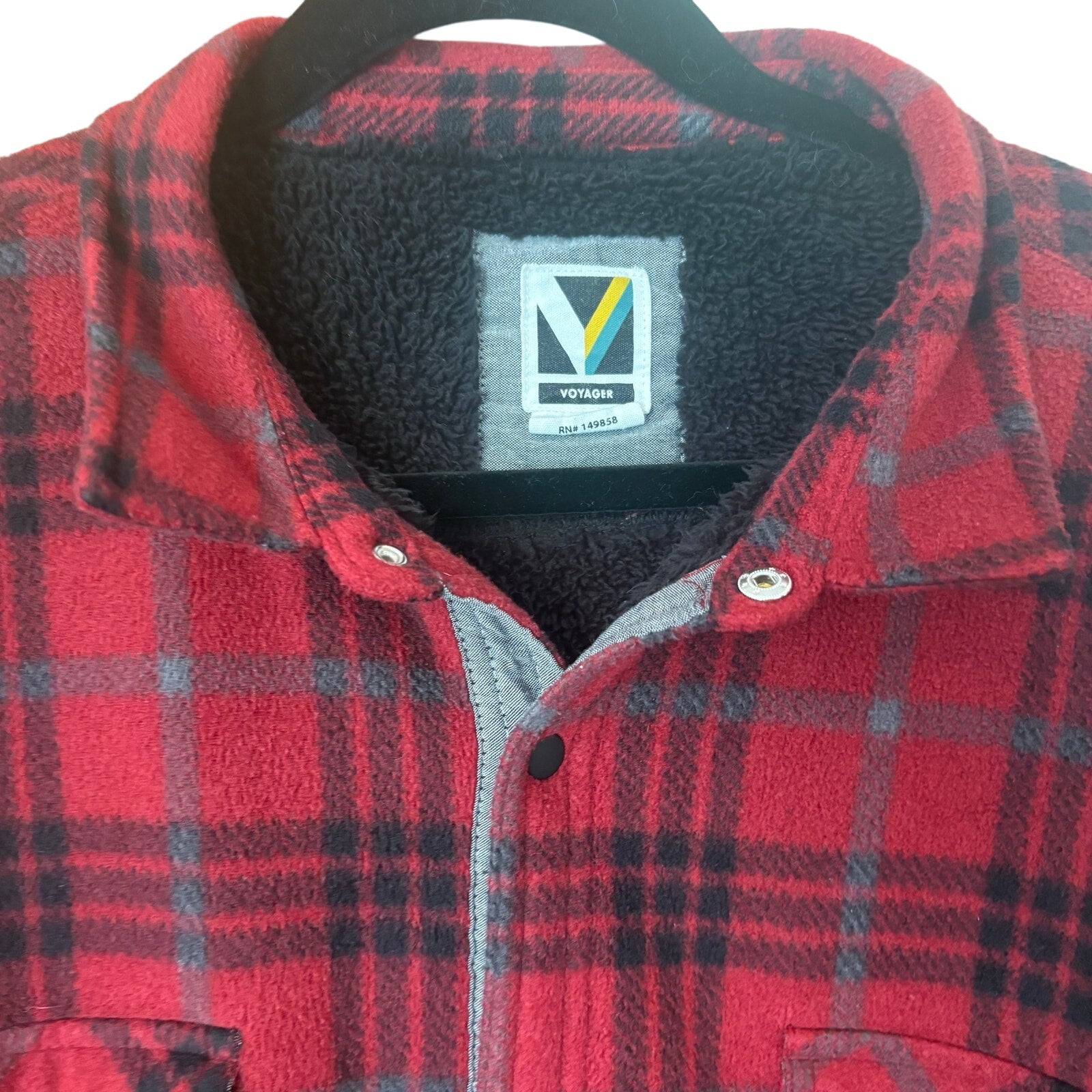 Item: Voyage red buffalo plaid fleece lined snap mens sweater jacket SIZE L