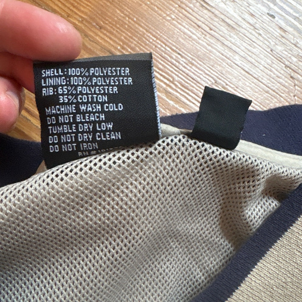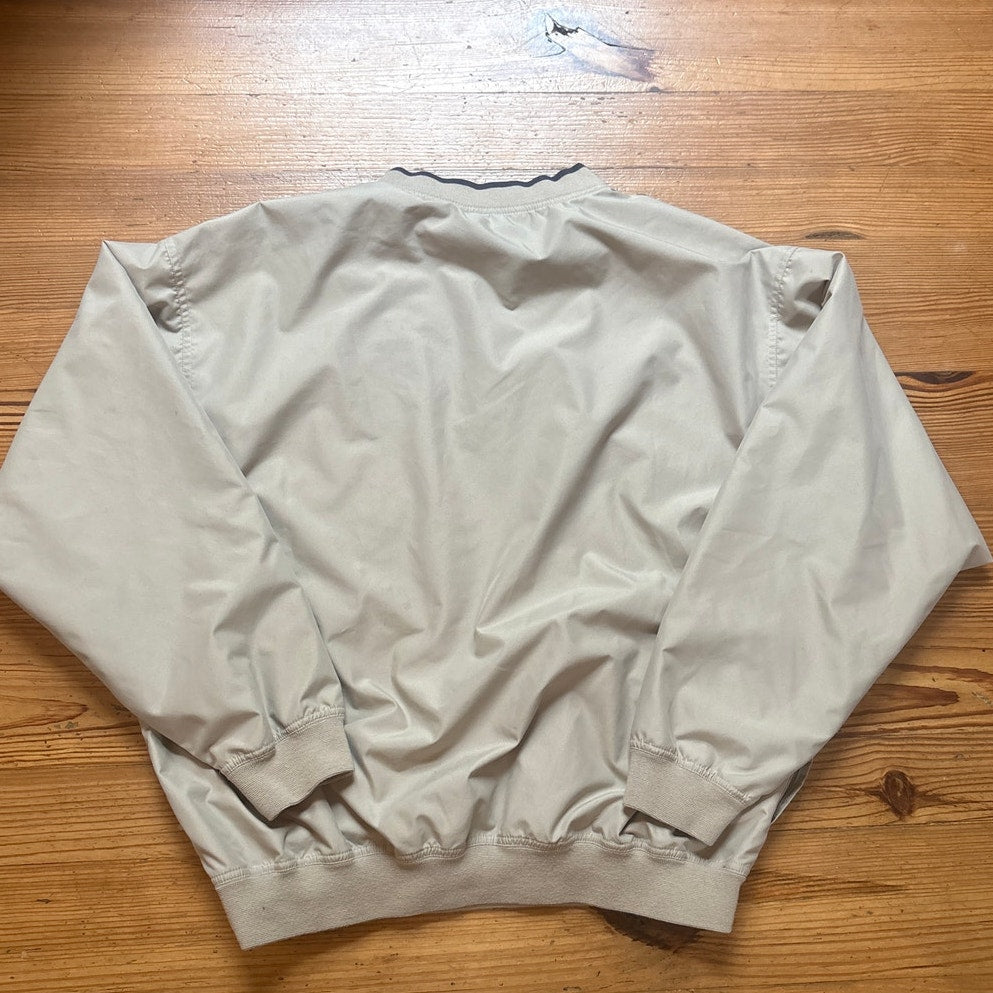 Item: White Bear Clothing Nascar beige blue trim polyester pullover windbreaker SIZE L
