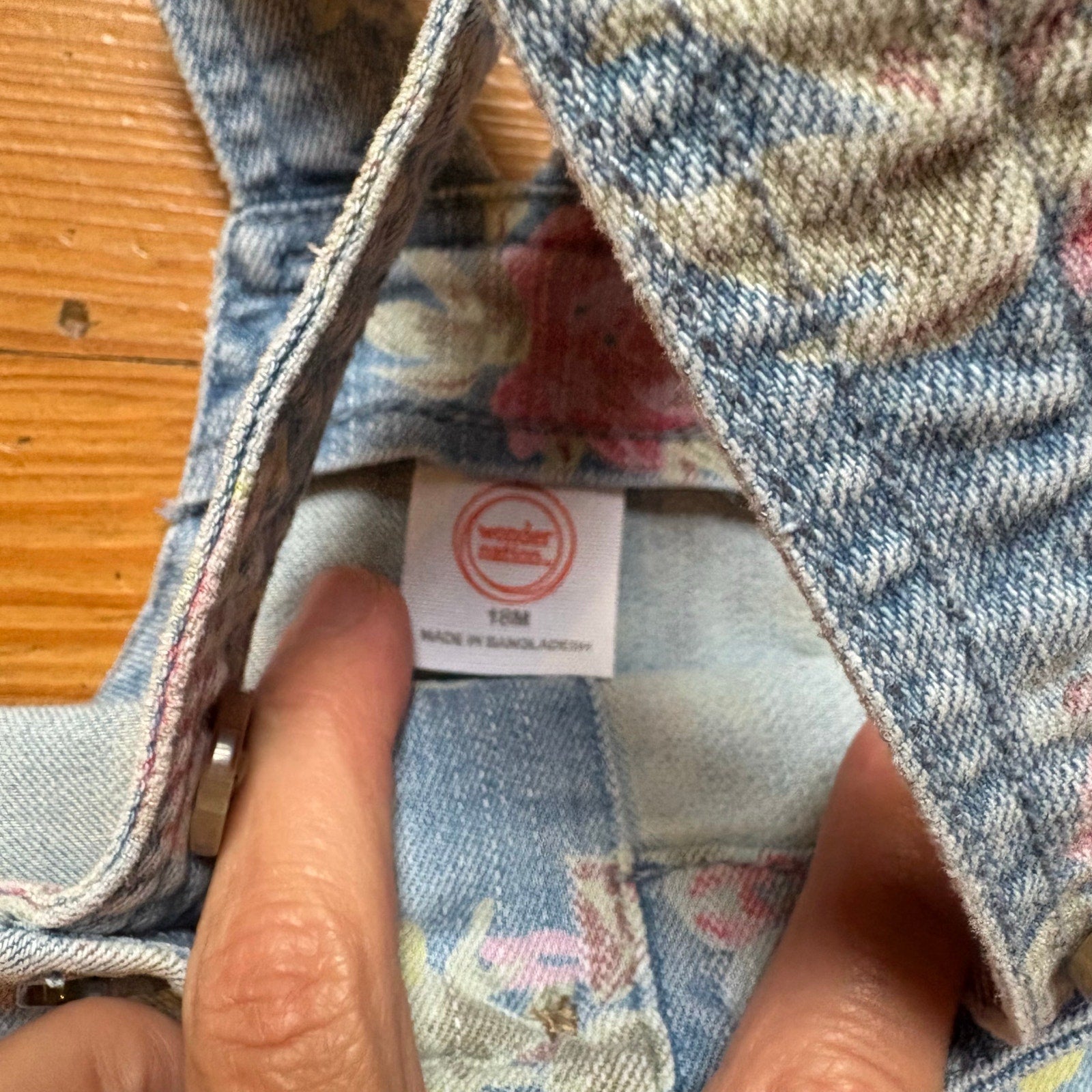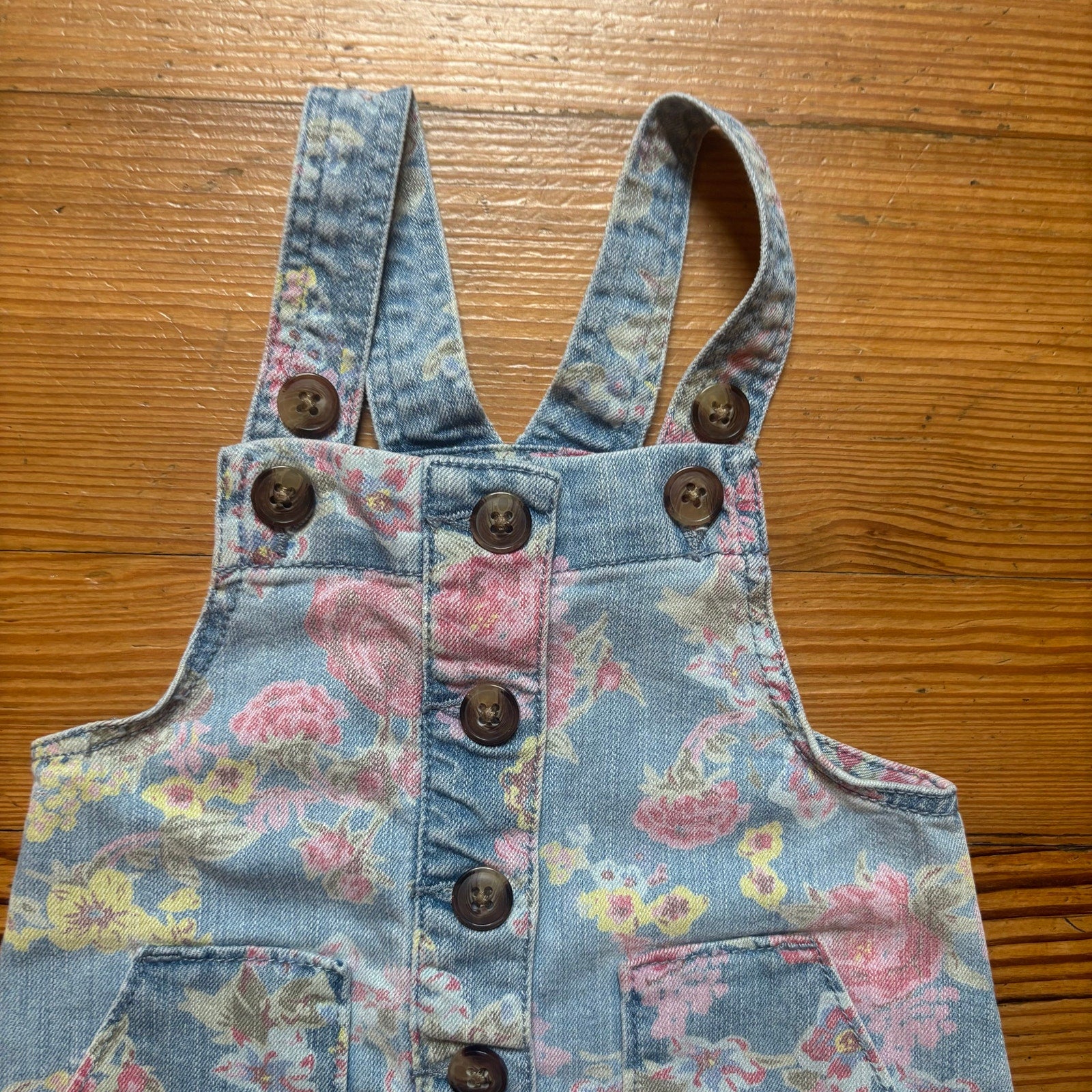 Color: light blue denim with pink florals