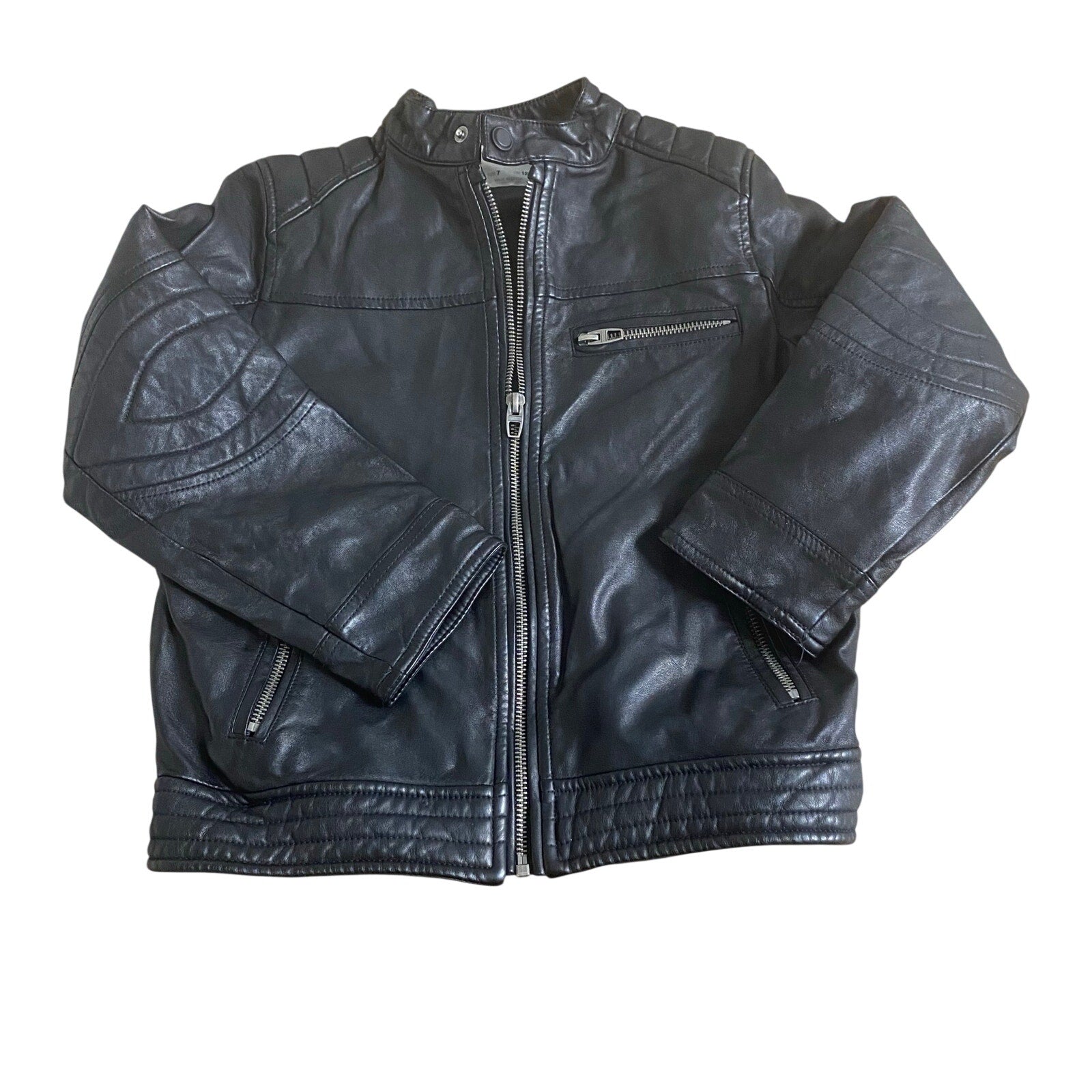 Zara black faux leather girls full zip moto jacket SIZE 7